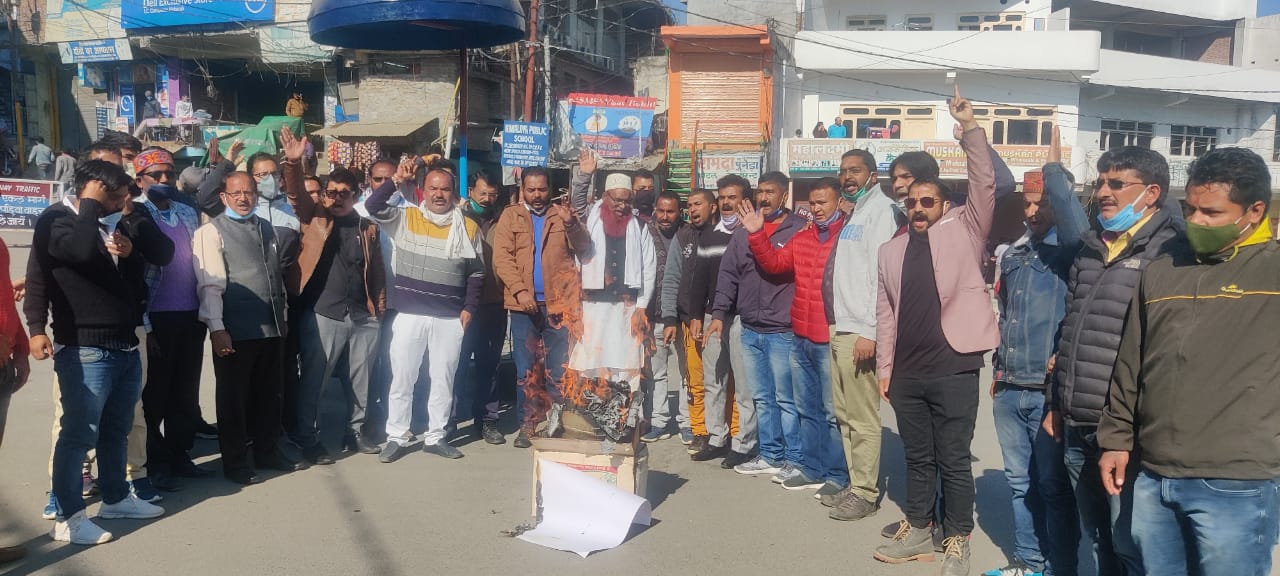 पिथौरागढ़-आज पिथौरागढ़ कांंग्रेस द्वारा किसानों के भारत बन्द का समर्थन करते हुए सिलथाम तिराहे में नरेन्द्र मोदी का पुतला दहन किया गया।जिलाध्यक्ष त्रिलोक महर के नेतृत्व में एकत्रित कार्यकर्ताओं द्वारा कहा गया कि पिछले दस दिनों से किसान देश की राजधानी में प्रदर्शन कर रहे हैं व धरना दे रहे हैं।परन्तु मोदी सरकार किसानों की सुनने तक को तैयार नहीं है।पूरे देश में किसानों का खुलेआम अपमान एवम् शोषण किया जा रहा है जो भाजपा का असली चरित्र प्रदर्शित कर रहा है।यूथ कांंग्रेस अध्यक्ष ऋषेन्द्र महर एवम् नगर अध्यक्ष पवन माहरा ने कहा कि देश का किसान अपना हक मांग रहा है।सरकार द्वारा अपने काले कानून को वापस लिया जाए व पूर्व सरकार द्वारा चलाए गये न्यूनतम मूल्य आय को अपने कानून में लाया जाए।नरेन्द्र मोदी किसान विरोधी है जिसका हम पुरजोर विरोध करते हैं।सेवादल जिलाध्यक्ष दिनेश बिष्ट एवं रोहन सौन ने कहा कि जो किसान हमारा अन्नदाता है जिसकी मेहनत से सम्पूर्ण देश की जनता को भोजन मिलता है वह किसान अपने हक के लिए सड़कों पर उतरने के लिए बाध्य है।भाजपा सरकार देश के हर वर्ग को समाप्त करने पर तुली है जिसको कांंग्रेस कतई बर्दाश्त नहीं करेगी।पुतला दहन कार्यक्रम में प्रदेश प्रवक्ता मथुरा दत्त जोशी,पुष्कर बिष्ट, जावेद खान,दीपक लुण्डी, त्रिलोक बिष्ट, नारायण कोहली,हिमांशु ओझा,योगेश नगरकोटी,सुधीर चौहान, रोहित कोहली,कैलाश जोशी,मनोज बिष्ट, मोनू प्रधान,भुवन जोशी,नवीन ऐरी,चंचल बोरा,मनोज पाण्डे,रमेश धामी,अभिषेक बोरा,पारस सिंह,रहीम कुरैशी,आनन्द धामी,कमलेश कसन्याल, राहुल लुण्डी, बाब कन्याल,शिवम पन्त,कार्तिक खर्कवाल, शाहबाज खान,दीवान धानिक सहित दर्जनों कांग्रेसजन शामिल रहे।