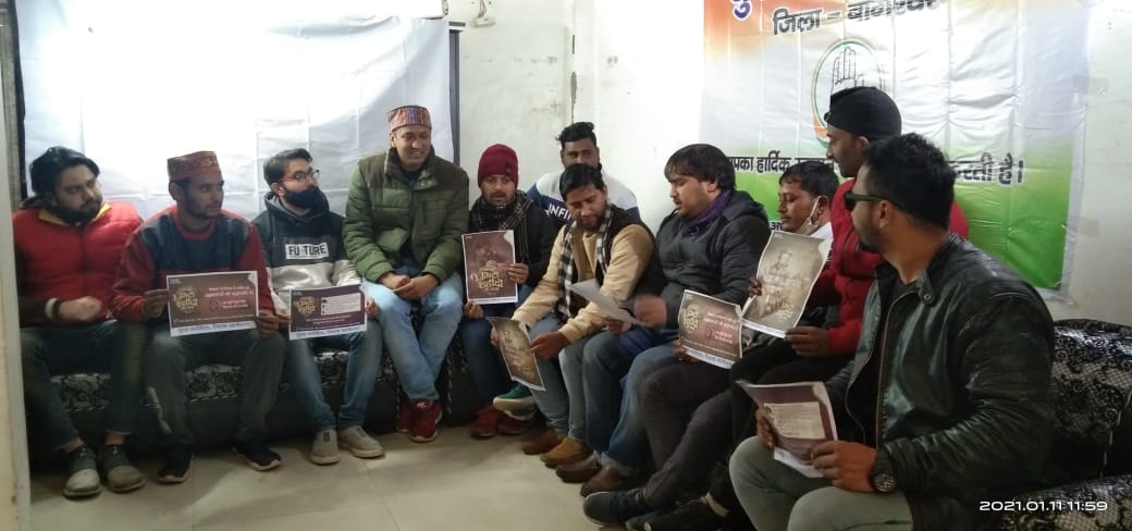 बागेश्वर-किसान आन्दोलन के समर्थन में कांग्रेस मुख्यालय में युवा कांग्रेस ने एक मुट्ठी मिट्टी शहीदों के नाम अभियान की शुरुआत की।इसके तहत युवा कांग्रेस द्वारा देश के कोने-कोने से आम जनता और शहीद किसानों के खेतों से मिट्टी एकत्रित कर दिल्ली में हिंदुस्तान का नक्शा बनाकर शहीदों को श्रद्धाजंलि दी जाएगी।एक मुट्ठी मिट्टी शहीदों के नाम कार्यक्रम के तहत राष्ट्रीय अध्यक्ष के निर्देशानुसार आज सुबह 11.30 बजे युवा कांग्रेस बागेश्वर जिलाध्यक्ष कवि जोशी जी के नेतृत्व मे पत्रकार वार्ता की गयी।जिसमे एक मुट्ठी मिट्टी शहीदों के नाम कार्यक्रम को बागेश्वर जिले के सभी गांवों के किसानों तक पहुचाने का संकल्प लिया गया।कार्यक्रम में कवि जोशी जिलाध्यक्ष युवा कांग्रेस,ईश्वर पाण्डेय जिला उपाध्यक्ष,अंकुर उपाध्याय जिला प्रवक्ता,भीम कुमार जिला सोशल मीडिया संयोजक,रिजवान खान वरिष्ठ जिला महासचिव,जगत नेगी वरिष्ठ जिला महासचिव,रोहित खैर नगर अध्यक्ष,उमेश उपाध्याय ,उम्मेद गड़िया, संस्कार,निहारिका आदि कार्यकर्ता मौजूद रहे।