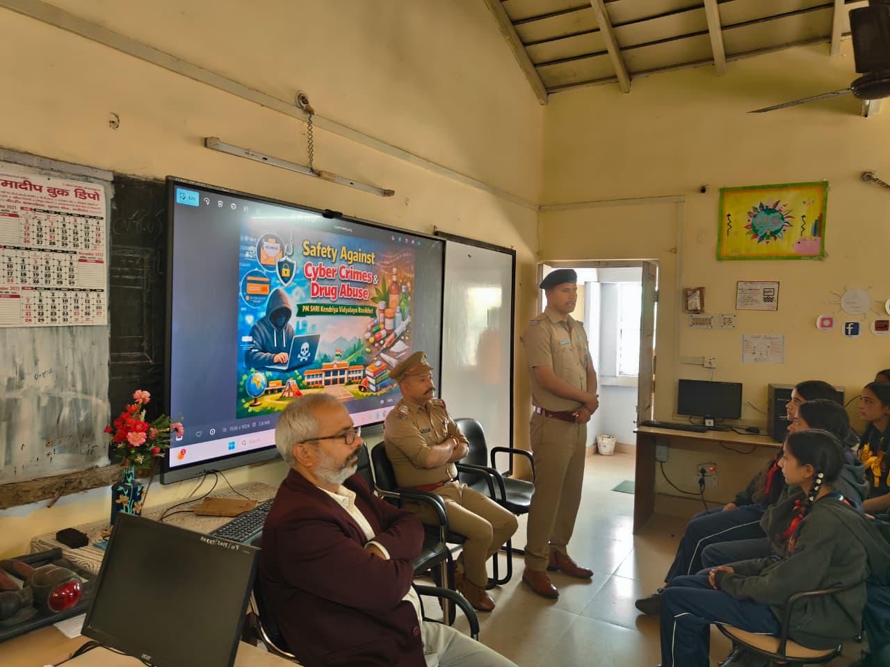 अल्मोड़ा-चंद्रशेखर घोडके वरिष्ठ पुलिस अधीक्षक अल्मोड़ा द्वारा जनपद के कोतवाली/थाना प्रभारियों को स्कूलों, कॉलेजों, नगर,कस्बों व ग्रामीण क्षेत्रों सहित विभिन्न संस्थानों में जनजागरूकता अभियान चलाने के निर्देश दिए गए हैं।हरबन्स सिंह अपर पुलिस अधीक्षक अल्मोड़ा के मार्गदर्शन व सीओ रानीखेत विमल प्रसाद के पर्यवेक्षण में दिनांक 1 अप्रैल को प्रभारी निरीक्षक कोतवाली रानीखेत भुवन चन्द्र जोशी मय पुलिस टीम द्वारा केन्द्रीय विद्यालय रानीखेत में छात्र छात्राओं व उपस्थित स्टाफ को वर्तमान में हो रहे डिजिटल अरेस्टिंग, फर्जी कॉल, ओटीपी फ्रॉड, साइबर क्राइम से बचाव, ऑनलाइन गेमिंग व ऐप में होने वाली ठगी से बचाव, सोशल मीडिया का सुरक्षित उपयोग करने के सम्बन्ध मे जानकारी देकर जागरूक किया गया। उपस्थित विद्यार्थियों को यातायात नियमों के पालन करने व बिना डीएल बाहन न चलाने व युवाओं को नशे से दूर रहकर अच्छी स्कूली शिक्षा प्राप्त करने हेतु प्रेरित किया गय़ा। साथ ही अपने आस पास के नशे से संबंधित किसी भी गोपनीय सूचना देने हेतु मानस हेल्पलाइन नंबर 1933 की जानकारी देते हुए अन्य हेल्पलाइन नंबरो जैसे डायल 112, महिला हेल्पलाइन 1090, चाइल्ड हेल्पलाइन 1098, साइबर हेल्पलाइन 1930, आपदा हेल्पलाइन 1070 के सम्बन्ध में विस्तृत जानकारी दी गई।इस दौरान विद्यार्थियों को आत्मरक्षा के मूलभूत टिप्स देते हुए किसी भी समस्या या संदेह की स्थिति में अपने अभिभावकों व पुलिस से तुरंत संपर्क करने हेतु प्रेरित किया गया।