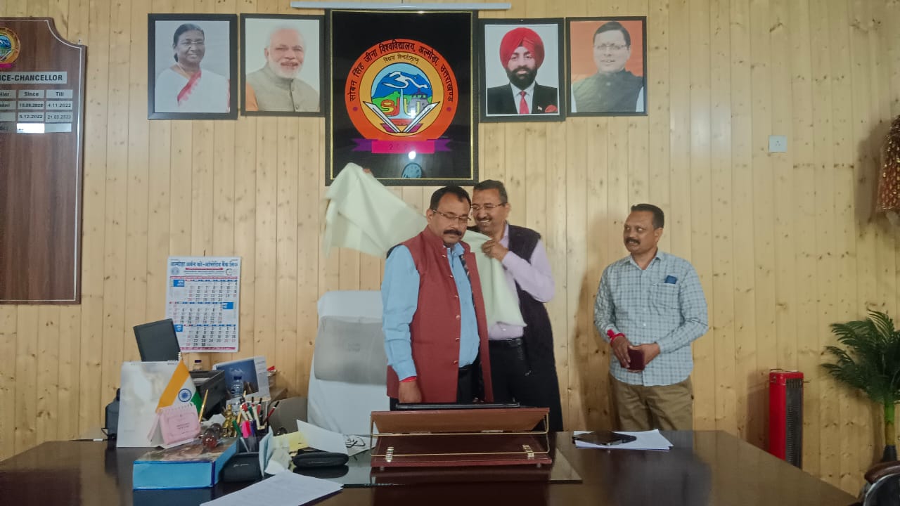 अल्मोड़ा-द्वाराहाट इंजीनियरिंग कॉलेज के पुस्तकालयाध्यक्ष डॉक्टर सीसी तिवारी एवं वैयक्तिक सहायक,निदेशक निखिल उपाध्याय ने सोबन सिंह जीनाविश्वविद्यालय अल्मोड़ा के कुलपति प्रो सतपाल सिंह बिष्ट से शिष्टाचार भेंट की और उनका शॉल ओढ़ाकर सम्मान किया।भेंट के दौरान द्वाराहाट इंजीनियरिंग कॉलेज में 20-21 अप्रैल को मनाए जा रहे ‘सिंटिला’ फेस्ट में मुख्य अतिथि रूप में शामिल होने को लेकर इंजीनियरिंग कॉलेज की ओर से आमंत्रित किया।इस मुलाकात के दौरान प्रतिनिधि मंडल के सदस्यों ने कुलपति प्रो सतपाल सिंह बिष्ट को द्वाराहाट इंजीनियरिंग कॉलेज के संरचनात्मक स्थितियों एवं शैक्षिक गतिविधियों से भी अवगत कराया।