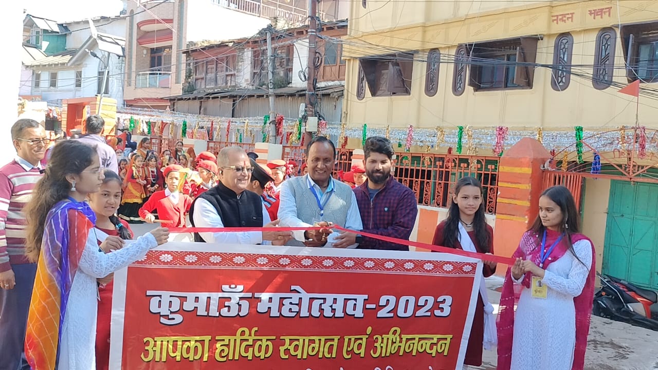 अल्मोड़ा-कुमाऊं महोत्सव -2023 अंतर्गत आज कार्यक्रम का शुभारंभ नंदा देवी मंदिर परिसर से विभिन्न झांकियों जिसमें सरस्वती शिशु मंदिर जीवन धाम के बच्चों के घोष ,दिशा अकैडमी के बच्चों के सुंदर नृत्य , पाईन वुड स्कूल के बच्चों की सुंदर प्रस्तुति, विवेकानंद इंटरमीडिएट कॉलेज के बच्चों के घोष, जीजीआई सी की बालिकाओं एवं होली अंजलि बच्चों की मनमोहक प्रस्तुति तथा छोलिया नृत्य के साथ-साथ साइकिल रैली एवं रन फॉर फन लाला बाजार ,चौक बाजार,कारखाना बाजार,कचहरी बाजार, जोहरी बाजार, गंगोला मोहल्ला होते हुए मुरली मनोहर मंदिर परिसर में पहुंचा।कार्यक्रम का उद्घाटन नंदा देवी मंदिर परिसर में गोल्डी मसाले उत्पाद के वरिष्ठ व्यवसायी सी एल वर्मा द्वारा रीबन काटकर शुभारंभ किया गया । इस अवसर पर वरिष्ठ रंगकर्मी कुमाऊं महोत्सव के संरक्षक अमरनाथ सिंह नेगी, महोत्सव की उद्घोषिका गीतम शर्मा, दीपक कुमार, शगुन त्यागी, हर्षिता तिवारी, लता तिवारी, गोविंद मेहरा, विजय मेहता, अतुल “सर,”” चेतन पांडे, पंकज भगत, मुकेश मेहता, पुष्पा नेगी, प्रीति बिष्ट, चंद्रकला बिष्ट , दीप्ति रावत, रीता तिवारी, नीमा भाकुनी, आदि-आदि मौजूद रहे। दूसरी ओर चौधानपाटा में साइकिल रैली एवं रन फॉर फन के कार्यक्रम का उद्घाटन हरी झंडी दिखाकर शुभारंभ किया। इस अवसर पर कुमाऊं महोत्सव के अध्यक्ष राजेंद्र तिवारी, मुख्य मुख्य खेल संयोजक हरीश कनवाल, गिरीश मल्होत्रा ,नवीन बिस्ट ,राजू बिष्ट ,विनीत बिष्ट ,पंकज भगत, पंकज बिस्ट,विजय मेहता ,जगदीश नगर कोठी ,निशा बिष्ट के साथ कोच मनीष कंवल ,लता अरोड़ा ,प्रभा नेगी ,जीवन प्रकाश सहित मनीष जोशी ,भैरव गोस्वामी मौजूद रहे।