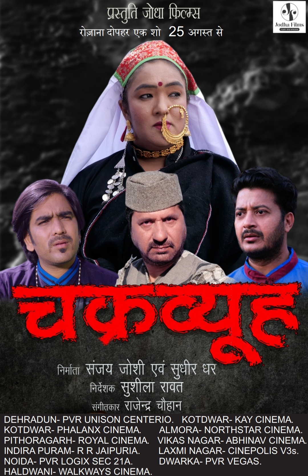 देहरादून-जोधा फिल्म के बैनर तले बनी इस उत्तराखंडी प्रादेशिक फीचर फिल्म का निर्माण पहली बार उत्तराखंड की तीनों भाषाओं गढ़वाली, कुमांऊनी व जौनसारी में किया गया है। जिसका नाम है चक्रव्यूह।जो आज रिलीज हो रही है।इसके निर्माता हैं संजय जोशी व सुधीर धर। इस फिल्म की निर्देशक हैं उत्तराखंड फिल्म जगत की जानी-मानी सुप्रसिद्ध पहली महिला डायरेक्टर श्रीमती सुशीला रावत।इस फिल्म की कहानी सुशीला रावत के हिन्दी नाटक प्रेम आहुति पर आधारित है जिसको उन्होंने शैक्सपीयर के बहुचर्चित नाटक ओथेलो को केन्द्र में रख कर लिखा था। इस फिल्म की पटकथा, संवाद व गीत भी बहु प्रतिभा की धनी सुशीला रावत के ही हैं।इस फिल्म की शूटिंग चम्पावत की खूबसूरत वादियों में,