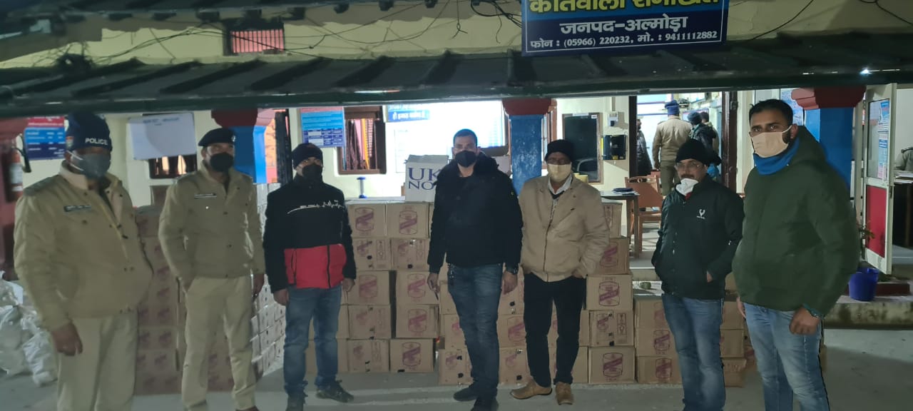 अल्मोड़ा-डॉ० मंजूनाथ टीसी वरिष्ठ पुलिस अधीक्षक अल्मोड़ा द्वारा समस्त थाना/चौकी प्रभारियों तथा एसओजी को आगामी चुनाव के दौरान आदर्श आचार संहिता का पालन कराये जाने व अवैध नशे का कारोबार कर चुनाव को प्रभावित करने वाले तत्वों के विरूद्ध कड़ी कार्यवाही किये जाने हेतु निर्देशित किया गया है।जिसके क्रम में अल्मोड़ा पुलिस द्वारा लगातार नशे के तस्करों के विरूद्ध कड़ी कार्यवाही की जा रही है।दिनांक 19.01.2022 को एसओजी अल्मोड़ा एवं एफएसटी टीम द्वारा संयुक्त रूप से छापेमारी के दौरान देवलीखेत (राजस्व क्षेत्र) में मोहन सिंह पुत्र स्व० कुंदन सिंह निवासी ग्राम देवलीखेत के बंद मकान के अंदर बने तहखाने से बोतल अध्धे पव्वे सहित कुल 170 पेटी अवैध अंग्रेजी शराब का जखीरा बरामद की गयी।उक्त सम्बन्ध में कोतवाली रानीखेत में FIR 01/2022 आबकारी अधिनियम में अभियोग पंजीकृत कर आवश्यक कार्यवाही की जा रही है।मादक पदार्थों की तस्करी की रोकथाम हेतु जनपद में की गई कार्यवाही पर बरामदगी टीम के उत्साहवर्धन हेतु डॉ० नीलेश आनंद भरणे पुलिस डीआईजी कुमाऊँ द्वारा 5000 रुपये तथा डॉ०मंजूनाथ टीसी एस एस पी अल्मोड़ा द्वारा 2 500 रुपये नगद ईनाम की घोषणा की गई है।बरामदगी में कुल 170 पेटी अवैध अंग्रेजी शराब बरामद हुई है जिसकी