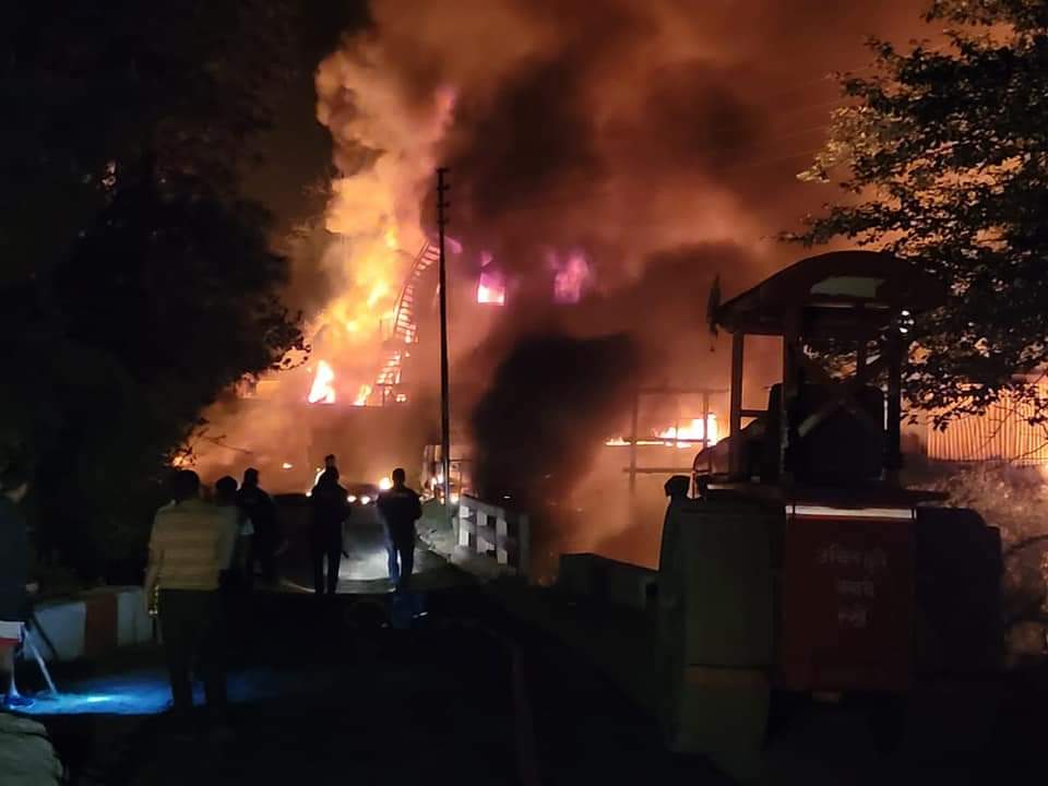 बागेश्वर-आज दिनांक 8-04-2022 को समय लगभग 02:10 बजे फायर सर्विस गरुड़ को एमडीटी के माध्यम से सूचना प्राप्त हुई कि बैजनाथ,डंगोली से आगे छटिया में लीसा फैक्ट्री में आग लगी है।प्रभारी फायर स्टेशन गरुड़ एल०एफ०एम० डूंगर सिंह द्वारा उक्त सूचना से एफएसएसओ,महेश चंद्र फायर सर्विस बागेश्वर को अवगत कराते हुए बताया गया कि आग अत्यधिक ज्यादा है।अतः सहायतार्थ हेतु फायर यूनिट भेजें उक्त सूचना पर एफ०एस०एस०ओ० महेश चंद्र मय फायर युनिट तथा वाहन संख्या-UK07F5207 व UK07G6392 तथा तोहात्सो पम्प के सहित अविलम्ब घटनास्थल के लिए रवाना हुए वहां पहुंच कर देखा कि रिद्धि सिद्धि कैमोरिजन लीसा फैक्ट्री में भयंकर आग लगी है जिसे फायर युनिट गरुड़ के द्वारा बुझाने का प्रयास किया जा रहा था।जिस पर फायर यूनिट की संयुक्त टीम द्वारा तुरन्त दोनों वाहनों से होज को फैलाकर आग पर फोम डालना प्रारम्भ किया तथा आग भयंकर थी तो एफ०एस०एस०ओ० द्वारा कपकोट फायर स्टेशन से भी फायर टेण्डर को घटनास्थल पर बुलाया गया तथा चारों मोटर फायर इंजनों से आग पर पानी और फोम डाला गया तथा पानी की पूर्ति के लिए दो तोहात्सो पम्पों की सहायता से घटनास्थल से लगभग 150 मीटर दूर नदी से रिलें पम्पिंग के द्वारा पानी वाहनों तक पहुंचाया गया।इस प्रकार कढ़ी मशक्कत और अथक प्रयासों के बाद आग को चारों ओर से घेरकर पूर्ण रूप से बुझाया गया।आग से फैक्ट्री गेट के पास खड़ा निजी वाहन आग कि चपेट में आकर पूर्ण रूप से जल गया तथा किसी प्रकार की जनहानि नहीं हुई।थाना प्रभारी बैजनाथ मय दल बल के घटनास्थल पर मौजूद रहे।घटनास्थल पर कार्यरत फायर टीम में