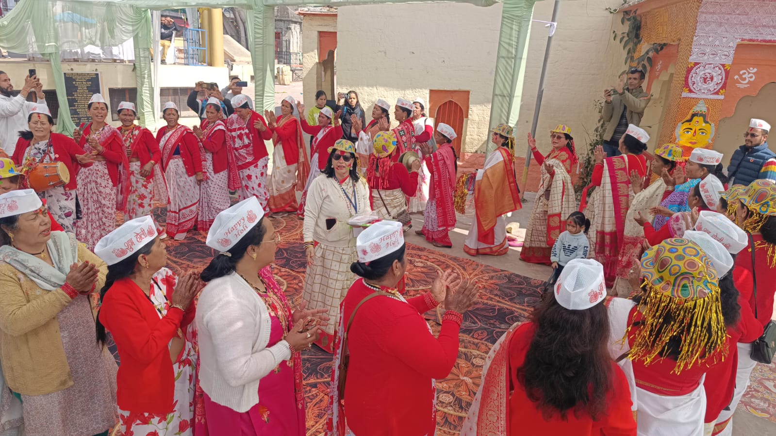 अल्मोड़ा-सांस्कृतिक नगरी अल्मोड़ा में होली का रंग चढ़ने लगा है।मंगलवार को मां नंदा सर्वदलीय महिला समिति की ओर से खड़ी होली का आयोजन किया गया। इस दौरान नंदादेवी मंदिर परिसर में महिलाओं ने होली गीतों पर शानदार नृत्य की प्रस्तुति देकर एक दूसरे को शुभकामनाएं दीं।महोत्सव में खड़ी होली का शुभारंभ महिलाओं ने नंदादेवी मंदिर की परिक्रमा के साथ किया।इसके बाद नगर के विभिन्न मोहल्लों की महिला होली टीमों ने गजानन शंभू के नंदन तेरी जय हो और होली की आई बहार फागुन महीने में गीत के साथ कार्यक्रम की शुरुआत की। महिलाओं ने सिद्धि को दाता विध्न विनाशक होली खेले गिरजापति नंदन,शिव के मन माही बसे काशी,जल कैसे भरूं जमुना गहरी,झुकि आयो शहर में व्यापार,नैनवा रसके भरे,पिया आओगे कौन घड़ी आदि शानदार होली गीतों की प्रस्तुतियां दी।साथ ही महिला होल्यारों ने रंग गुलाल लगाकर श्रंगार व भक्ति आधारित होली का भी गायन किया।महिला होल्यारों ने विभिन्न स्वांग के जरिए लोगों को खूब गूदगूदाया।यहां समिति की अध्यक्ष मीना भैसोड़ा,सचिव गीता मेहरा, उपाध्यक्ष भगवती बिष्ट,बिमला बोरा,लक्की वर्मा,गीता आर्या, किरन साह,माया वर्मा,प्रेमा बिष्ट,मोहनी कनवाल,गीता पांडे, दीपा भंडारी,हरीता नेगी,गीता बिष्ट,निर्मला जोशी,राधा राजपूत,राजेश्वरी चम्याल, ज्योति रावत,हेमा जोशी समेत कई महिला होल्यार मौजूद रही।