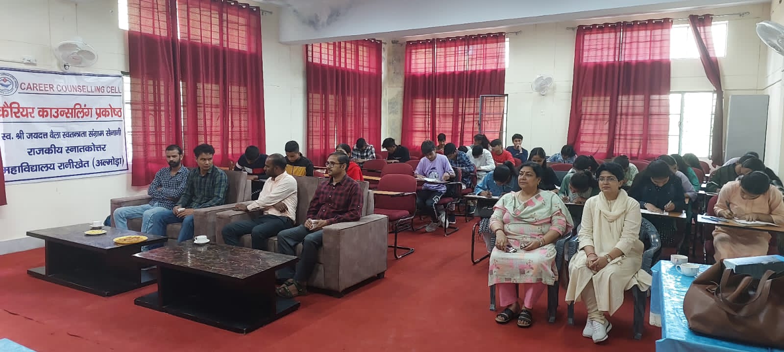 रानीखेत-स्व. श्री जयदत्त वैला स्वतंत्रता संग्राम सैनानी राजकीय स्नातकोत्तर महाविद्यालय रानीखेत अल्मोड़ा में करियर काउंसलिंग सेल के तत्वावधान में क्षेत्रीय आयुर्वेदीय संस्थान थापला गनियाद्योली द्वारा इंटरनेशनल ईयर आफ मिलेट्स २०२३ को मनाने हेतु एक निबंध प्रतियोगिता आयोजित करवाई।निबंध का विषय इम्पोर्टेंस आफ मिलेट्स एन्ड देयर न्यूट्रीशनल एन्ड मेडिसिनल यूज रखा गया था।प्रतियोगिता में सभी संकायो के प्रथम सत्राद्ध के छात्र छात्राओं ने प्रतिभाग किया।कार्यक्रम मे अनुसन्धान संस्थान के अशोक कुमार कुमावत,पंकज कुमार तथा विनोद निखुरपा ने अपना योगदान दिया।कार्यक्रम के अन्त में अशोक कुमार कुमावत द्वारा मिलेट्स की उपयोगिता व एनेमिया के कारक,उसके बचाव व सम्बन्धित आहार पर पी पी टी के माध्यम से एक व्याख्यान दिया।कार्यक्रम में महाविद्यालय के प्राध्यापक डॉ0 विजय बिष्ट,डॉ0 दीपा पाण्डेय, डॉ0 रश्मि रौतेला,डॉ0 महिराज माहरा, डॉ0 प्रसून जोशी, डॉ0 रोहित जोशी, डॉ0 राहुल चंद्रा , डॉ0 कोमल गुप्ता, डॉ0 पारुल बोरा डॉ0 बी. पी. एस. कन्वाल और डॉ0 निहारिका बिष्ट आदि उपस्थित रहे।