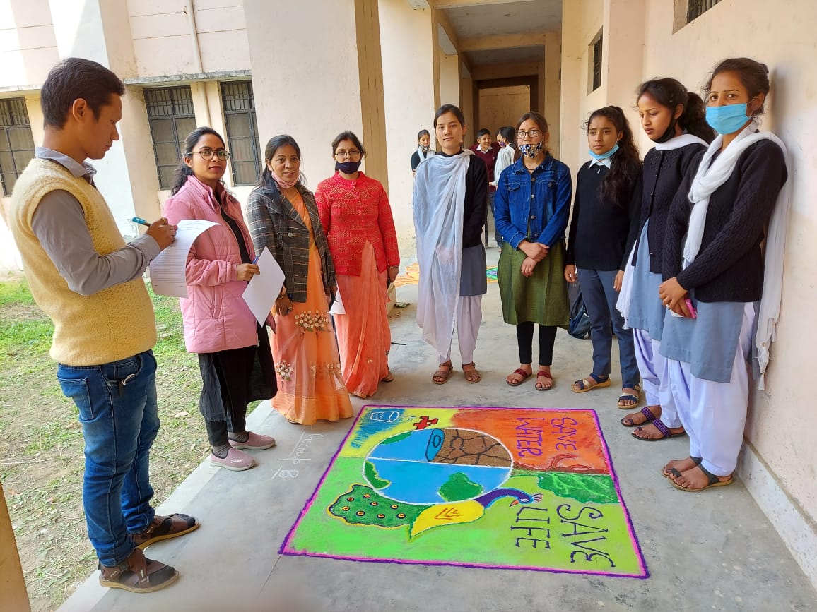 बागेश्वर-आज कुमाऊं केसरी पं० बद्रीदत्त पाण्डेय राजकीय स्नातकोत्तर महाविद्यालय बागेश्वर में केन्द्र सरकार द्वारा संचालित नमामि गंगे परियोजना 2021 के तहत रंगोली तथा स्लोगन प्रतियोगिताएं आयोजित की गयी जिसका विषय जल संरक्षण रहा।आयोजित प्रतियोगिताओं में छात्र छात्राओं ने बढ़ चढ़ कर प्रतिभाग किया।रंगोली प्रतियोगिता में ग्रुप बी प्रथम स्थान पर,ग्रुप सी व ग्रुप डी द्वितीय स्थान पर तथा ग्रुप ए तृतीय स्थान पर रहे।स्लोगन प्रतियोगिता में गौरव कुमार बी काम द्वितीय वर्ष ने प्रथम स्थान,नेहा फर्तयाल बी ए द्वितीय वर्ष ने द्वितीय स्थान तथा हेमलता लोहार बी ए द्वितीय वर्ष ने तृतीय स्थान प्राप्त किया।निर्णायक मण्डल के सदस्यों में डा० हेमलता पाण्डेय,डा० भगवती नेगी,डा०जगवती,डा०नरेश ग्वाल,डा०मनोज टम्टा तथा डा० अल्का कोली,डा० महेश कुमार रहे।