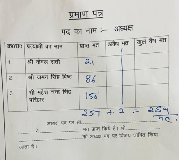 अल्मोड़ा-अल्मोड़ा बार एसोसिएशन के चुनाव में एडवोकेट महेश परिहार ने जीत दर्ज की है। Post navigation अल्मोड़ा की जनता ने सड़क पर उतरकर किया प्रदर्शन नन्दादेवी मेले के दौरान दुपहिया वाहनों के लिए खुली रहे एल आर साह रोड,सभाषदों के नेतृत्व में स्थानीय लोगों ने दिया एसएसपी को ज्ञापन