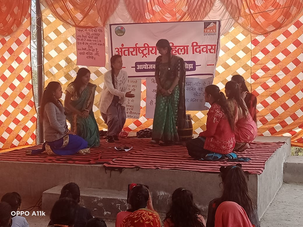 अल्मोड़ा-विश्व महिला दिवस के अवसर पर अमन संस्था की ओर से गोविंदपुर में महिला संगठनों के साथ कई कार्यक्रमों का आयोजन किया। इस मौके पर महिलाओं ने कई जागरुकपरक और सांस्कृतिक कार्यक्रम प्रस्तुत किए।इसके साथ ही महिलाओं ने भाषण कौशल कार्यक्रम में शिरकत कर विभिन्न ज्वलंत मुद्दों पर अपनी राय रखी।यह कार्यक्रम गोविंदपुर में आयोजित किया गया। कार्यक्रम की अध्यक्षता महिला संगठन रणखिला की अध्यक्ष मंजू देवी ने की तथा संचालन हिमानी परिहार और समन्वयक विमला ने किया।इस मौके पर महिलाओं ने महिला मुद्दों पर आधारित नाटक,भाषण,कविता पाठ आदि कार्यक्रमों में बढ़चढ़ कर हिस्सा लिया।कार्यक्रम में आस पास के गांवों की 100 से अधिक महिलाओं ने प्रतिभाग किया।इस मौके पर अमन की नीलिमा भट्ट,विमला,रजनी,आरती, हिमानी,कविता,संगीता,आशा वर्कर्स लीला बिष्ट सहित अनेक महिलाओं ने शिरकत की।