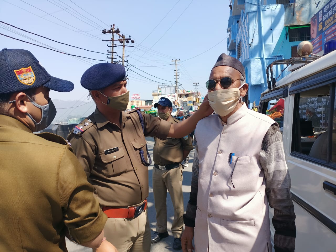 अल्मोड़ा-पंकज भट्ट वरिष्ठ पुलिस अधीक्षक अल्मोड़ा के निर्देशन पर पुलिस लाईन अल्मोड़ा में महिला कल्याण केन्द्र द्वारा कोरोना संक्रमण से बचने एवं जरूरतमन्दों को मास्क वितरित किये जाने हेतु सूती मास्क बनाये जा रहे हैं,जिन्हें बिना मास्क बाजार में घूमने वाले जरूरतमन्दों को वितरित किये जाने हेतु थाना प्रभारियों को निर्देशित किया गया है।इसी क्रम में आज प्रभारी निरीक्षक कोतवाली अल्मोड़ा हरेन्द्र चौधरी ,उ०नि० ओम प्रकाश,का० संदीप,का० अरविन्द द्वारा नगर अल्मोड़ा के स्थानीय बाजार, जलाल तिराहे आदि स्थानों में भ्रमण कर बिना मास्क के घूम रहे बच्चों, बुजुर्गो एवं मजदूरों को सूती मास्क पहनाये गये तथा बिना मास्क बाजार में घूमने पर सख्त हिदायत भी दी गयी।स्थानीय लोगों को अभी भी मास्क पहनने हेतु जागरूक किया गया इसके उपरान्त भी मास्क न पहनने वालों के विरूद्व कार्यवाही किये जाने हेतु सचेत किया गया।