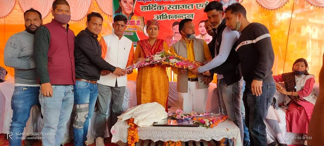 अल्मोड़ा-महिला सशक्तिकरण एवं बाल विकास मंत्री बनने के बाद रेखा आर्या प्रथम बार अल्मोड़ा पहुँची। इससे पूर्व क्वारब में भारतीय जनता पार्टी एवं उसके आनुषंगिक संगठनों के सैकड़ों कार्यकर्ताओं ने मंत्री रेखा आर्या को फूल-मालाओं से लाद दिया।क्वारब से सैकड़ों गाड़ियों की काफिले के साथ रेखा आर्या सोहन टैंट हाउस बाड़ी बगीचा पहुँची जहाँ भाजपा जिलाध्यक्ष रवि रौतेला द्वारा मंत्री रेखा आर्या का गर्मजोशी से स्वागत किया गया और कहा गया कि उनके महिला सशक्तिकरण एवं बाल विकास मंत्री बनने से क्षेत्र की जनता अत्यधिक प्रसन्न है।पार्टी कार्यकर्ताओं ने मंत्री को उनकी नई पारी के लिए शुभकामनाएँ दीं।इस अवसर पर बोलते हुए मंत्री रेखा आर्या ने कहा कि भारतीय जनता पार्टी महिलाओं का सम्मान करने वाला एकमात्र राजनीतिक दल है।उन्होंने विश्वास दिलाया कि महिलाओं और बच्चों के उत्थान के लिए एक मंत्री के नाते उनसे जो बन पड़ेगा उसे करने के लिए वे सहर्ष तैयार हैं।उन्होंने मंत्री का दायित्व प्रदान करने के लिए प्रदेश नेतृत्व एवं केन्द्रीय नेतृत्व का आभार जताया।इस अवसर पर भाजपा जिलाध्यक्ष रवि रौतेला,डीसीबी अध्यक्ष ललित लटवाल,भाजपा जिला महामंत्री महेश नयाल,जिलामंत्री बिनीत बिष्ट,नरेंद्र प्रसाद,मीडिया प्रभारी शेलेन्द्र साह,सह मीडिया प्रभारी संदीप सिंह भोज,सोशल मीडिया प्रभारी पूनम पालीवाल,महिला मोर्चा प्रदेश मंत्री किरन पन्त,प्रदेश उपाध्यक्ष ओबीसी मोर्चा अजय वर्मा,नगर अध्यक्ष कैलाश गुरुरानी,मण्डल अध्यक्ष प्रकाश भट्ट,प्रकाश बिष्ट, ललित मेहता,संजय डालाकोटी, भूपाल सिंह,बिशन कनवाल,अध्यक्ष महिला मोर्चा ममता भट्ट,अनुसूचित मोर्चा धर्मवीर आर्या,अध्यक्ष भाजयुमो सुनील बिष्ट,अध्यक्ष किसान मोर्चा हरीश कनवाल,लीला बोरा,निर्मला जोशी,माया जोशी,बीना नयाल,चम्पा पाण्डे,गंगा बिष्ट,लता पाण्डे,निर्मला जोशी,मीना नेगी,प्रेमा मेर,गीता जोशी, दीप्ति सोनकर,अभय साह,संदीप सिंह भोज,मनोज जोशी,दीपक वर्मा,संजय साह,नरेन्द्र आगरी,आनन्द डंगवाल, अमन नज्जौन उपसचिव व्यापार मण्डल,राहुल बोरा,गोपाल सिंह नयाल, देवेन्द्र सत्यपाल,सुनील जोशी, सलमान अंसारी सहित सैकड़ों कार्यकर्ता उपस्थित थे।