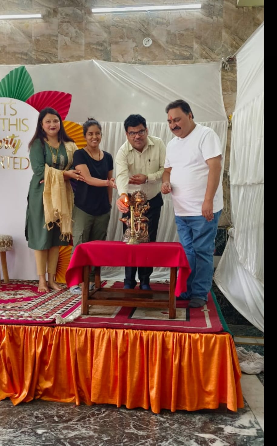 अल्मोड़ा-शनिवार को अल्मोड़ा में भगवती पैलेस के सभागार में महिला उद्यमियों द्वारा रानी उत्सव नामक बहु श्रेणी प्रदर्शनी का आयोजन किया गया।जिसका उद्घाटन भाजपा प्रदेश मंत्री किरण पंत,भारतीय महिला क्रिकेटर एकता बिष्ट,डीडीओ अल्मोड़ा कमलेश तिवाड़ी,प्रतिष्ठित व्यवसायी पप्पू धवन ने संयुक्त रूप से किया। कार्यक्रम को सम्बोधित करते हुए वक्ताओं ने कहा कि इस प्रदर्शनी में लोग विभिन्न प्रकार की खरीदारी कर सकते हैं।जिसमें परिधान,गृह सज्जा के उत्पाद,चांदी के आभूषण,उपहार देने योग्य वस्तुएं,पेय पदार्थ,भोजन इत्यादि शामिल है।उन्होंने यह भी कहा कि महिलाओं द्वारा यह एक उत्तम प्रयास है।कार्यक्रम में हेमा सुफियाल, प्रेमा मेर,सीमा सिंह,विमला नगरकोटी सहित कई लोग उपस्थित रहे।आयोजक मंडल में चेतना धवन, सिवांगी वर्मा सहित समस्त महिला समूह शामिल रहा।