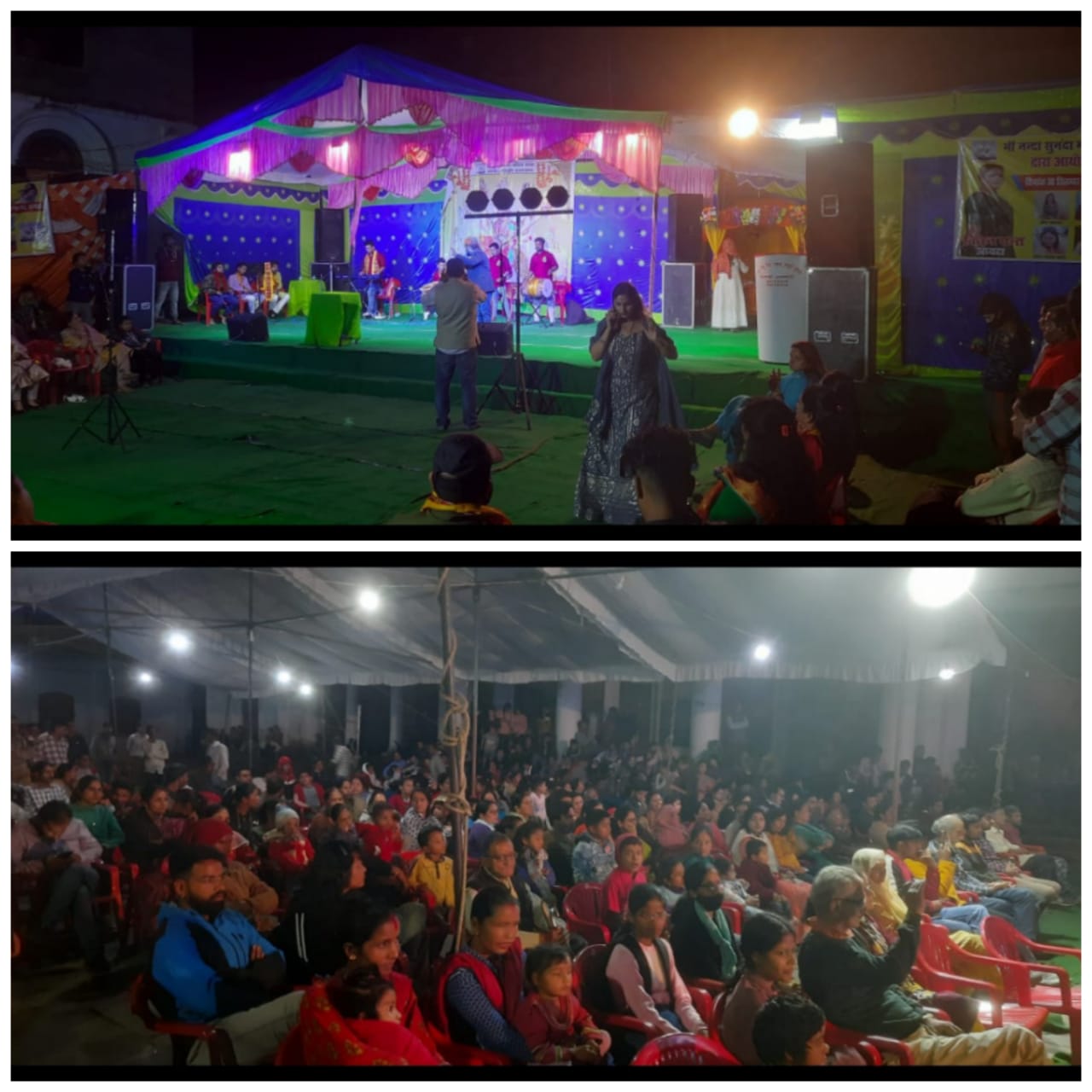 अल्मोड़ा-मां नंदा सुनंदा महिला शिक्षा स्वास्थ्य एवं सुरक्षा संस्था के द्वारा आज सायं 6 बजे से रैमजे इंटर कॉलेज के प्रांगण में माता की चौकी एवं कन्या पूजन का कार्यक्रम आयोजित किया गया।कार्यक्रम में उत्तराखंड की लोक कलाकार श्रीमती माया उपाध्याय द्वारा गाये गये माता के भजनों से माहौल गूंज उठा।इस दौरान दर्शकों की भारी भीड़ भजनों पर झूमती नजर आयी।कार्यक्रम में सांस्कृतिक नृत्यों ने भी दर्शकों का मन मोह लिया।देर रात्रि तक चले कार्यक्रम में दर्शक अपनी कुर्सियों में डटे रहे। कार्यक्रम को दर्शकों द्वारा काफी सराहा गया।कार्यक्रम में अल्मोड़ा विधायक मनोज तिवारी,पूर्व भाजयुमो अध्यक्ष कुन्दन लटवाल,पूर्व विधायक रघुनाथ सिंह चौहान,यूसीडीएफ उपाध्यक्ष दीप सिंह डांगी,तारा चन्द्र जोशी,पूर्व पालिकाध्यक्ष शोभा जोशी,भाजपा जिलाध्यक्ष रवि रौतेला, संस्था की अध्यक्ष श्रीमती किरन पन्त एवं पदाधिकारी,हरीश कनवाल,विनीत बिष्ट,कैलाश गुरूरानी,जया पाण्डेय,अरूण वर्मा,डा० प्रियंका यादव,विपुल कार्की सहित सैकड़ों की संख्या में दर्शक मौजूद रहे।समाचार लिखे जाने तक कार्यक्रम जारी था।