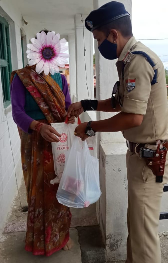 अल्मोड़ा-मिशन हौसला को लगातार अल्मोड़ा पुलिस पंकज भट्ट वरिष्ठ पुलिस अधीक्षक अल्मोड़ा के निर्देशन में सफल बना रही है।दिनांक 21 /05/2021 को चौकी प्रभारी मोरनौला उ०नि० सौरभ भारती को सामाजिक कार्यकर्ता शंकर मेर के द्वारा सूचना दी गयी कि मोतियापाथर क्षेत्र में एक महिला जिनके पति की मृत्यु लगभग 15 साल पूर्व हो चुकी है और जिसका एक बेटा है जो बाहर प्राइवेट नौकरी करता है एवं जीवन यापन और खाने की समस्या आ रही है इस सूचना पर प्रभारी चौकी मोरनौला उ०नि० सौरभ कुमार भारती,आरक्षी विजय कुमार के साथ तत्काल मौके पर जाकर उक्त महिला को आवश्यक राशन/सब्जी व मास्क वितरित किया गया व किसी भी प्रकार की समस्या होने पर मदद का भरौसा दिलाया गया तथा किसी भी प्रकार की समस्या होने पर आस-पास के लोगों के जरिये काल करने हेतु कहा गया।