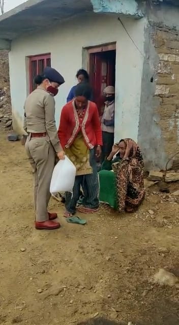 अल्मोड़ा-अशोक कुमार आई०पी०एस० पुलिस महानिदेशक उत्तराखण्ड द्वारा कोरोना की जंग में मानव सेवा हेतु उत्तराखण्ड पुलिस द्वारा किये जा रहे प्रयासों को “मिशन हौसला” नाम दिया गया है,जिसके अन्तर्गत पंकज भट्ट एस०एस०पी० अल्मोड़ा की प्रेरणा पर अल्मोड़ा पुलिस भी बढ़-चढ़ कर “मिशन हौसला” में मानव सेवा हेतु तत्पर है।जिसके अन्तर्गत अल्मोड़ा पुलिस द्वारा जरूरमन्दों की प्राप्त शिकायतों पर हर सम्भव मदद की जा रही है।थाना लमगड़ा के ग्राम प्रहरी रतन सिंह द्वारा बताया गया कि उनके ग्राम बघाड़ में एक महिला जिनके एक माह पूर्व पति का स्वर्गवास हो जाने के कारण उनके यहाॅ कमाने वाला कोई नहीं एवं तीन बच्चियाॅ भी है,जिन्हें इस कोरोना काल में जीवनयापन में काफी समस्यायें हो रही हैं।सूचना प्राप्त होने पर उ०नि० बरखा कन्याल द्वारा ग्राम प्रहरी के साथ थाने से 10 कि०मी० सड़क मार्ग एवं एक किलोमीटर पैदल उस गाॅव में पहुॅचकर महिला एवं बच्चों की कुशलता पूछकर उन्हें राशन किट आदि उपलब्ध कराया गया।मिशन हौसला का भरौसा दिलाते हुए उनकी हर सम्भव मदद किये जाने तथा पुलिस द्वारा लगातार उनके सम्पर्क में रहेगी विश्वास दिलाया गया।