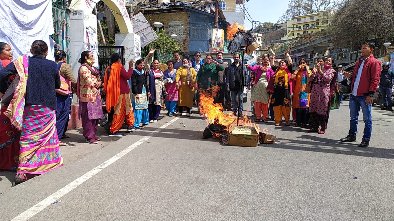 अल्मोड़ा-मुख्यमंत्री द्वारा विगत दिवस महिलाओं और युवतियों के कपड़े पहनने के तरीके पर की गयी आपत्तिजनक टिप्पणी से महिला कांंग्रेस का गुस्सा भड़क गया।महिला कांंग्रेस की जिलाध्यक्ष लता तिवारी के नेतृत्व में कार्यकर्ताओं ने आज चौहानबाटा में सूबे के मुख्यमंत्री का पुतला दहन किया।इस अवसर पर महिला कांंग्रेस कार्यकर्ताओं ने मुख्यमंत्री से इस्तीफे की मांग कर दी।चौहानबाटा में एकत्रित महिला कांंग्रेस कार्यकर्ताओं ने जोरदार प्रदर्शन के साथ आक्रोश व्यक्त किया।इस अवसर पर महिला कांंग्रेस की जिलाध्यक्ष लता तिवारी ने कहा कि जिस तरह से सूबे के मुख्यमंत्री ने महिलाओं के पहनावे को लेकर आपत्तिजनक बयान दिया है वो निन्दनीय है।उन्होंने कहा कि एक उच्च तथा जिम्मेदार पद पर आसीन व्यक्ति के द्वारा महिलाओं के ऊपर इस तरह की टिप्पणी अशोभनीय है।उन्होंने कहा कि आज जबकि लड़कियां किसी भी क्षेत्र में लड़कों से पीछे नहीं है ऐसे में मुख्यमंत्री द्वारा यह तय करना कि उन्हें क्या पहनना चाहिए और क्या नहीं उनकी मानसिकता को स्पष्ट प्रदर्शत करता है।उन्होंने कहा कि महिलाओं पर अपने अमर्यादित बयान के लिए मुख्यमंत्री को तुरन्त सार्वजनिक मांफी मांगनी चाहिए तथा नैतिकता के आधार पर अपने पद से इस्तीफा दे देना चाहिए।पुतला दहन कार्यक्रम में महिला कांंग्रेस जिलाध्यक्ष लता तिवारी,प्रदेश उपाध्यक्ष प्रीति बिष्ट, नगर अध्यक्ष गोपा नयाल,राधा बिष्ट, लीला जोशी,पारू उप्रेती,मेनका आर्या,पार्वती टम्टा,तारा भन्डारी,माया गैड़ा,हंसा पान्डेय,सरस्वती आर्या,भागीरथी,हेमा तिवारी,राधा तिवारी,दीपा त्रिपाठी,किरन जोशी,तारा तिवारी,बसन्ती बिष्ट, ज्योति पान्डेय,जिला प्रवक्ता राजीव कर्नाटक, जिला सचिव दीपांशु पान्डेय,सेवादल प्रदेश ध्वजवाहक संजय दुर्गापाल,यूथ कांंग्रेस जिलाध्यक्ष निर्मल रावत,सुनील कठायत,ललित सतवाल,रमेश नेगी,अख्तर हुसैन,भानू बिष्ट, सुन्दर सहित दर्जनों कांंग्रेसजन उपस्थित रहे।