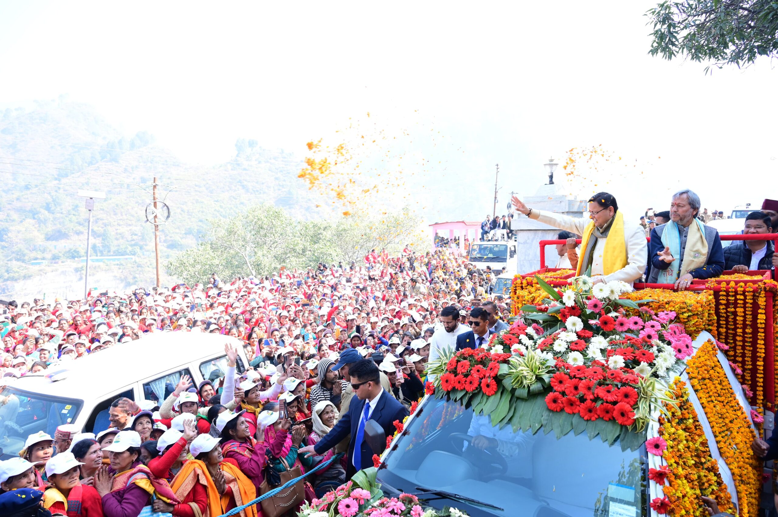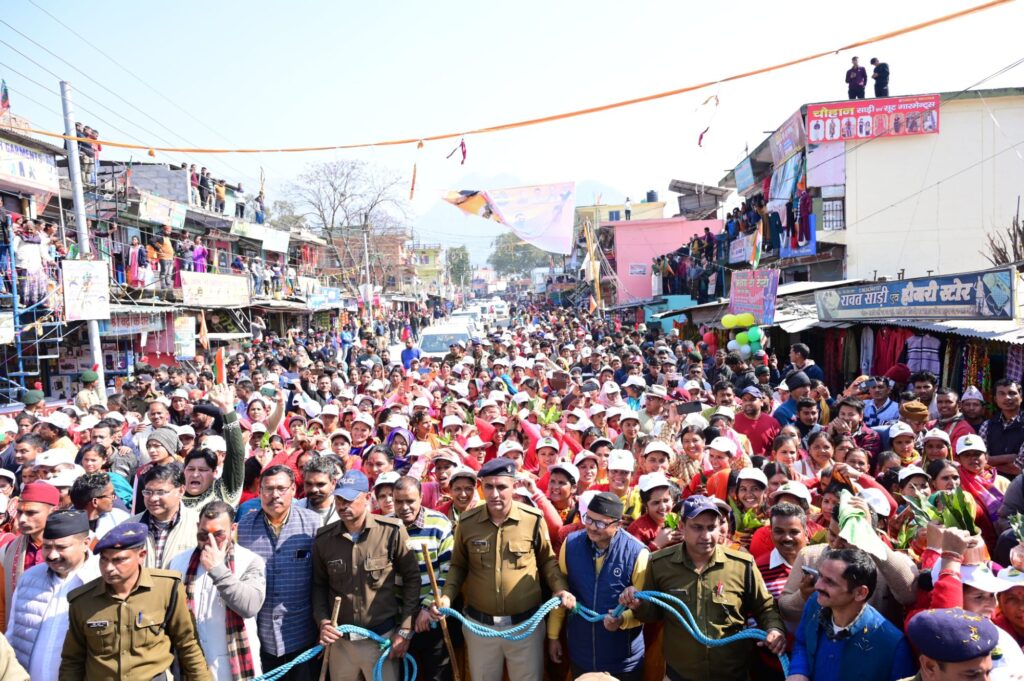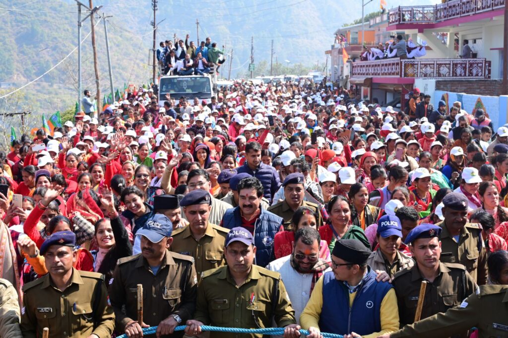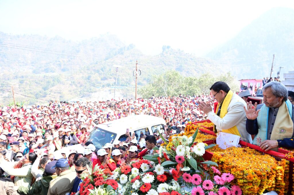 गौचर-मुख्यमंत्री पुष्कर सिंह धामी ने आज जनपद चमोली के गौचर में नंदा-गौरा महोत्सव के अंतर्गत आयोजित रोड शो में प्रतिभाग किया।इस दौरान हजारों की संख्या में पहुंचे युवाओं,मातृशक्ति,बुजुर्गों एवं बच्चों ने पुष्प वर्षा कर मुख्यमंत्री का स्वागत किया।मुख्यमंत्री ने कहा कि यह अथाह जनसमूह डबल इंजन सरकार द्वारा उत्तराखण्ड में संचालित विभिन्न योजनाओं पर देवतुल्य के जनता अपार विश्वास को परिलक्षित करता है।