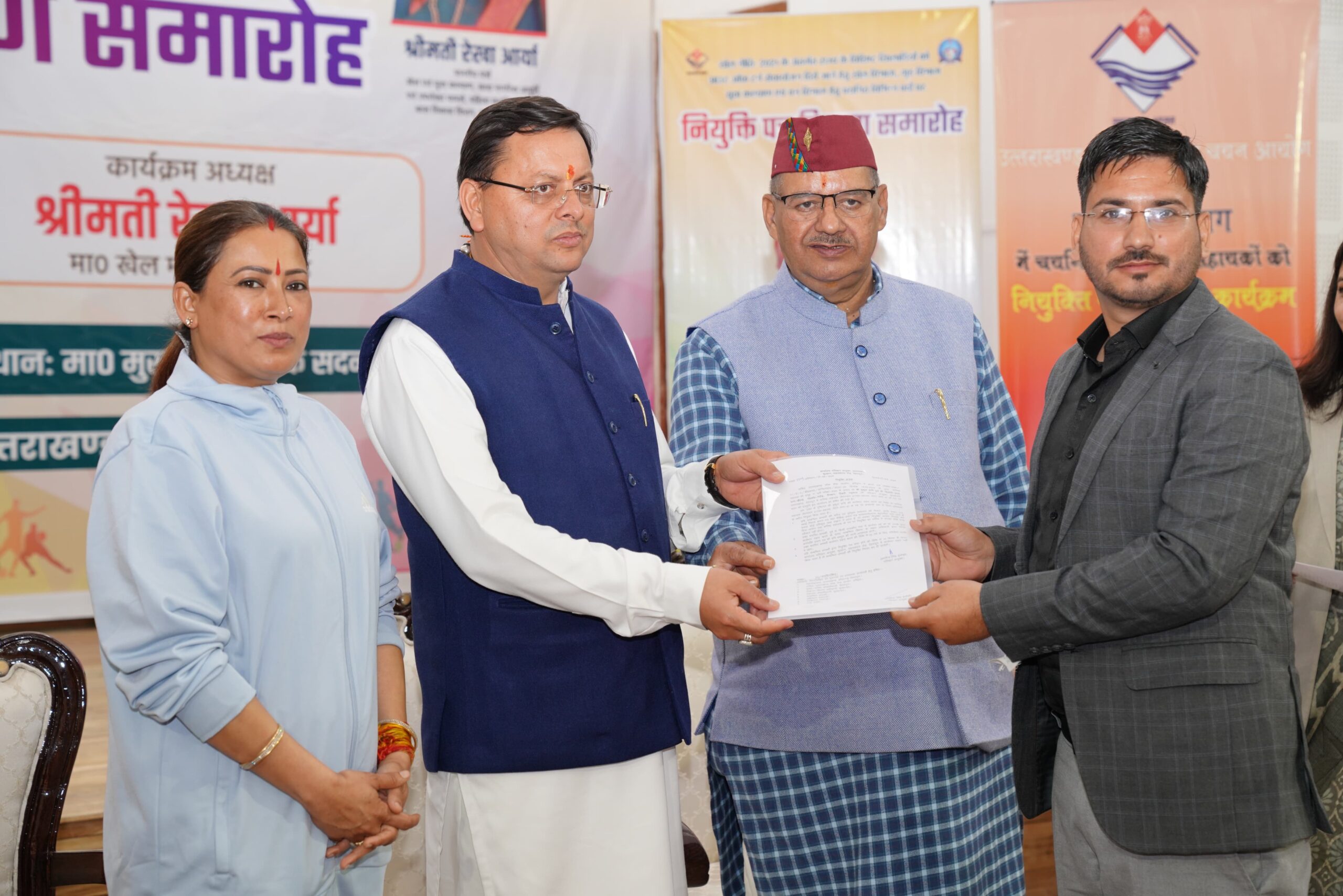 मुख्यमंत्री ने कहा कि खेलों के साथ ही खिलाड़ियों को अंतरराष्ट्रीय और राष्ट्रीय खेलों में प्रतिभाग करने के लिए तमाम सुविधाएं उपलब्ध कराई जा रही हैं तथा सरकार खिलााड़ियों को प्रोत्साहित करने और उन्हें उत्कृष्ट प्रदर्शन के लिए सम्मानित करके, खिलाड़ियों का मनोबल निरन्तर बढ़ा रही है। उन्होंने आउट ऑफ टर्न नियुक्त प्रक्रिया का जिक्र करते हुये कहा कि यह प्रक्रिया सभी अन्तर्राष्ट्रीय, राष्ट्रीय पदक विजेताओं के लिए संजीवनी का कार्य करेगी।मुख्यमंत्री ने कहा कि उद्यान, परिवहन विभाग की तरह ही विगत माहों में प्रतिदिन युवाओं को विभिन्न विभागों के अन्तर्गत नियुक्ति पत्र देने का सिलसिला जारी है। उन्होंने कहा कि हमने संकल्प लिया है कि देवभूमि के मेहनती युवाओं को हर हाल में पूरी पारदर्शिता के साथ रोजगार उपलब्ध कराएंगे। इस संकल्प को सिद्धि तक पहुंचाने में हम कामयाब हुये हैं तथा नकल माफियाओं को नकल विरोधी सख्त कानून बनाकर सलाखों के पीछे भेजा है। उन्होंने कहा कि हमने महज तीन माह में ही लगभग पांच हजार युवाओं को नर्सिंग अधिकारी, वन आरक्षी, सहायक लेखाकार, डिप्टी जेलर व बन्दी रक्षक, ग्राम विकास अधिकारी आदि के पदों पर नियुक्ति पत्र प्रदान कर रोजगार उपलब्ध कराया है तथा ढाई साल की बात की जाये तो रोजगार उपलब्ध कराने का यह आंकड़ा 20 हजार से भी अधिक हैै।मुख्यमंत्री ने प्रधानमंत्री श्री नरेंद्र मोदी जी का उल्लेख करते हुये कहा कि उनके नेतृत्व में देश में रोजगार के अभूतपूर्व अवसर उपलब्ध हो रहे हैं तथा रोजगार देने का इतना बड़ा अभियान आज तक देश के इतिहास में नहीं चलाया गया है। उन्होंने कहा कि पदों को भरने की जो पहल हमने की है, यह अभियान आगे भी जारी रहेगा। उन्होंने कहा कि प्रधानमंत्री जी के नेतृत्व में हमने युवाओं को सरकारी क्षेत्र में रोजगार देने के साथ-साथ स्वरोजगार के क्षेत्र में भी आगे बढ़ाने का बीड़ा उठाया है।मुख्यमंत्री ने कहा कि हमने प्रयाग पोर्टल और युवा उत्तराखंड एप लांच किया है, जिसमें युवा रोजगार के साथ ही स्वरोजगार के लिए रजिस्ट्रेशन करवा सकते हैं। इसके साथ ही होम स्टे, मौन पालन के साथ ही अन्य क्षेत्रों में युवाओं को स्वरोजगार के लिए ऋण भी उपलब्ध करवाया जा रहा है। उन्होंने कहा कि विकल्प रहित संकल्प के मंत्र के साथ हम उत्तराखंड को देश का श्रेष्ठ राज्य बनाने के लिए निरन्तर कार्य कर रहे हैं तथा आप लोगों को नियुक्ति पत्र देना भी हमारे संकल्प का हिस्सा है। कार्यक्रम को कैबिनेट मंत्री श्री गणेश जोशी तथा श्रीमती रेखा आर्य ने भी सम्बोधित करते हुये, सरकार की उपलब्धियों पर विस्तृत प्रकाश डाला तथा चयनित अभ्यर्थियों को बधाई व शुभकामनायें दी।इस अवसर पर विधायकगण, प्रमुख सचिव आर. के. सुधांशु, ड