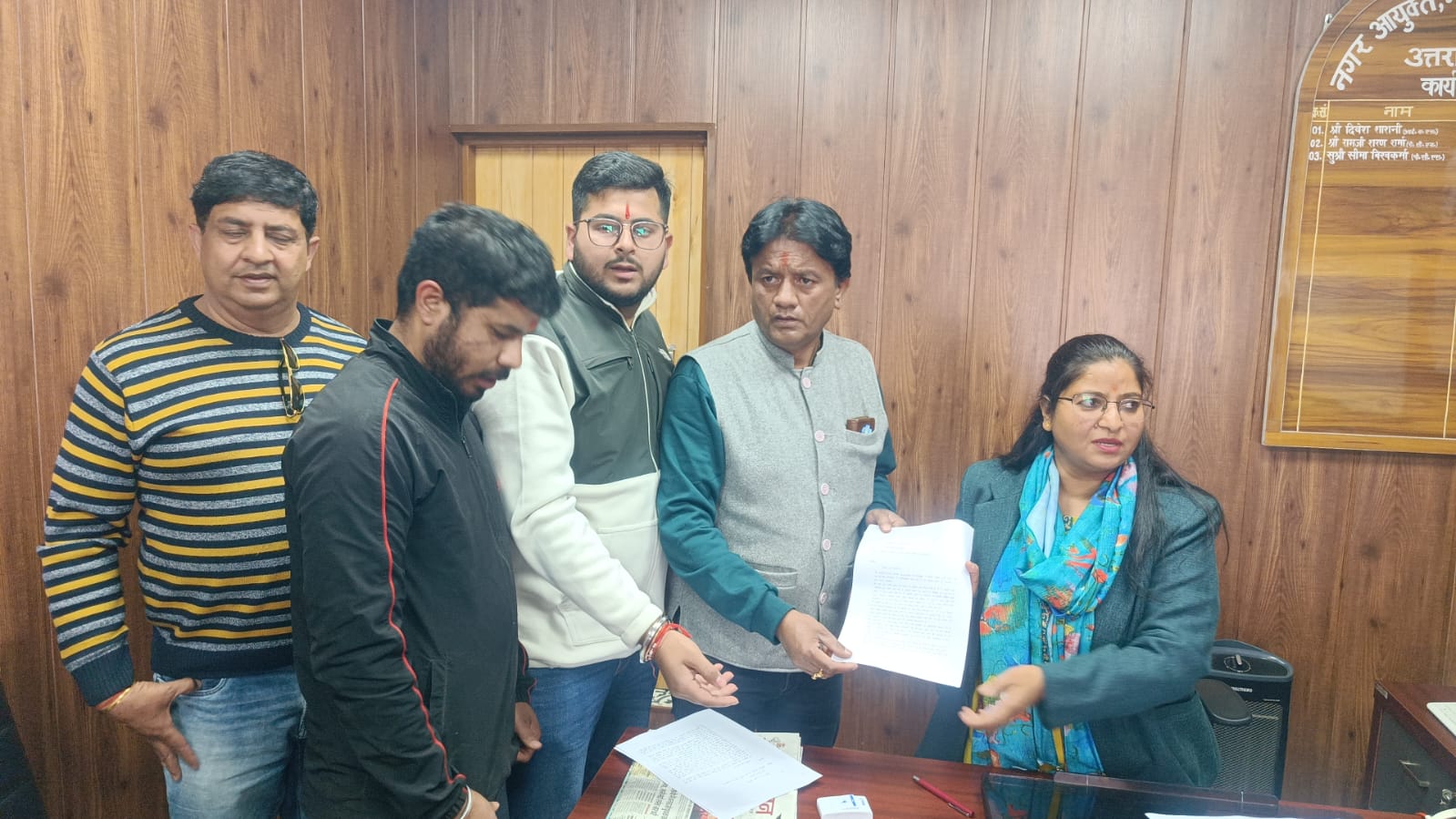 युवाओं ने मांग की कि जनहित को ध्यान में रखते हुए इस मार्ग को दोपहिया वाहनों के लिए बंद करने के निर्णय पर पुनर्विचार किया जाए।उन्होंने सुझाव दिया कि यदि यातायात व्यवस्था को सुधारना है तो वैकल्पिक उपाय किए जाएं जिससे लोगों को परेशानी न हो।नगर आयुक्त ने शिष्टमंडल की बातों को गंभीरता से सुनते हुए आश्वासन दिया कि मामले में उचित स्तर पर विचार किया जाएगा और जनहित को प्राथमिकता दी जाएगी।युवाओं ने उम्मीद जताई कि प्रशासन उनकी मांगों पर सकारात्मक निर्णय लेते हुए गोपालधारा मार्ग को आमजन के लिए सुचारू रूप से खुला रखेगा। नगर आयुक्त से मिलकर ज्ञापन सौंपने वालो में ज्ञापन सौंपने वालो में दीपक गुरुरानी,युवम वोहरा,आशीर्वाद गोस्वामी,अजय वालिया,सक्षम गोयल,राजीव अग्रवाल,हिमांशु मनराल,हर्ष पटवा,रक्षित गोयल, करन नज़ोन,भोला शंकर जोशी, आयुष पांडेय,नमित जोशी, महेश राठौर,अनिरुद्ध वालिया, बिशन बोरा,चिमन कुमार आदि उपस्थित रहे।