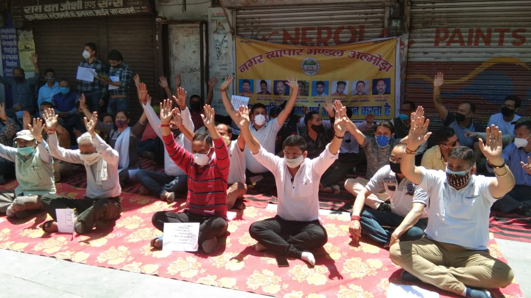 अल्मोड़ा-आज चौक बाजार अल्मोड़ा में नगर व्यापार मंडल अल्मोड़ा के बैनर तले एक सांकेतिक धरना दिया गया। जिसमे नगर के वरिष्ठ व्यापारी एवं नगर के व्यापारी उपस्थित हुए।जिसमें प्रदेश सरकार द्वारा व्यापारियों की लगातार हो रही उपेक्षा की घोर निन्दा की गई।जिसमे सभी व्यापारियों ने एक स्वर में व्यापारियों के ऊपर किए जा रहे सौतेले व्यवहार का पुरजोर विरोध किया गया तथा 1 घंटे का सांकेतिक धरना प्रदर्शन किया और कहा कि प्रदेश सरकार के साथ साथ नगर पालिका और जिला पंचायत का किराया और कोई भी व्यापारिक बिल,टैक्स नहीं दिया जाएगा।नगर अध्यक्ष सुशील साह ने कहा कि अगर 9 तारीख से प्रदेश सरकार दुकानों को नहीं खोलेगी तो भी सभी व्यापारिक प्रतिष्ठान खोले जायेंगे।प्रदेश उपाध्यक्ष किशन गुर्रानी, मनोज अरोड़ा, कार्यक्रम में दीप डांगी,मोहन कनवाल,मनोज सनवाल,त्रिलोचन जोशी,दीप साह आदि ने व्यापारी हितो की बात रखी और बाजार खोलने की मांग की।धरना प्रदर्शन मे प्रांतीय उद्योग व्यापार मंडल के उपाध्यक्ष मनोज अरोड़ा,किशन गुर्रानी,नगर व्यापार मंडल के अध्यक्ष सुशील शाह,उपाध्यक्ष राजेंद्र प्रसाद,प्रत्येश पांडे,महिला उपाध्यक्ष अनीता रावत,महासचिव मयंक बिष्ट,उपसचिव राहुल बिष्ट उपसचिव अमन नज्जोंन,कोषाध्यक्ष कार्तिक साह,पूर्व नगर अध्यक्ष सूरज साह,पूर्व नगर अध्यक्ष दिनेश गोयल,पूर्व नगर उपाध्यक्ष मोहन सिंह कनवाल,दुग्ध संघ के प्रदेश उपाध्यक्ष दीप सिंह डांगी, दीप लाल साह, मुमताज कश्मीरी,हरी कृष्ण खत्री,त्रिलोचन जोशी,मनोज सनवाल,चेतन कपूर मोहन सिंह कनवाल,ज्योति कपूर,अभय साह दीपक साह ,दीपू लोहनी,सुरेंद्र सूरी, नीरज चौहान,रहबर,अंचल गुप्ता, मनसोद,अंकुर वोहरा,इमरान अंसारी,आशुतोष भट्ट,हिमाशु कांडपाल,दर्शन रावत,अंकुर बिष्ट, दिनेश चंद्र मठपाल,पवन साह,गीता मेहरा,नीरज सांगा,गोपाल चम्याल,यतेंद्र गुप्ता,रंजन गुप्ता,गिरीश धवन,किशन लाल,सागर रावत, सलमान,अमन अंसारी,मनोज और नगर के समस्त क्षेत्रों से व्यापारी उपस्थित रहे।