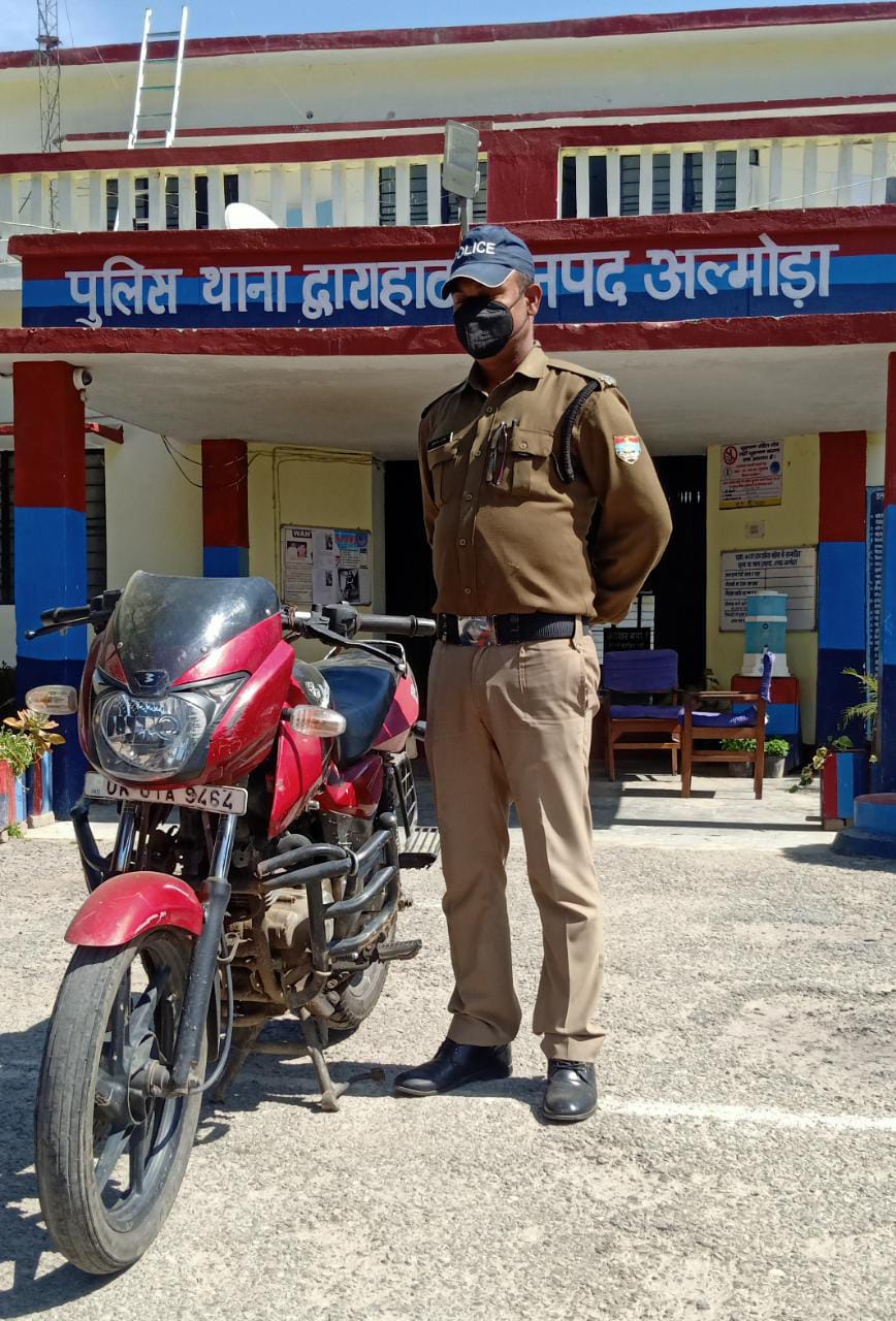 द्बाराहाट-जनपद में दुर्घटनाओं में कमी लाने के उद्देश्य से चलाए गए अभियान के अंतर्गत प्रभारी चौकी बग्वालीपोखर निखिलेश विष्ट द्वारा बग्वालीपोखर बाजार में चैकिंग के द्वौरान एक वाहन संख्या UK01 ए 9464 मोटरसाईकिल को रोका गया जिसका वाहन चालक हेमन्त सिंह उम्र-40 पुत्र दीवान सिंह निवासी कुवांली जनपद अल्मोड़ा को शराब के नशे मे चलाते पाये जाने पर मोटर वाहन अधिनयम के अंतर्गत गिरफ्तार कर वाहन को सीज किया गया।
