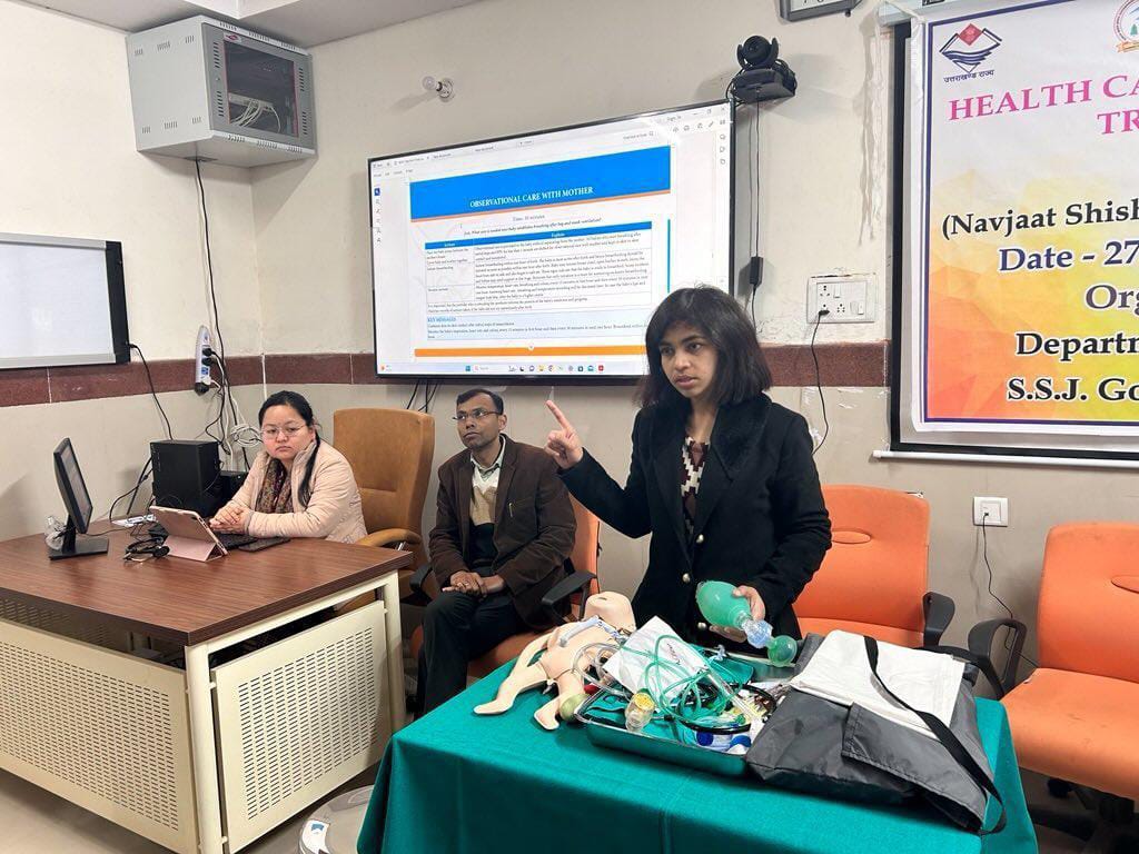 अल्मोडा-राजकीय मेडिकल कालेज के बाल रोग विभाग मे एन एच एम के अंतर्गत आयोजित दो दिवसीय एन एस एस के प्रशिक्षण प्रदान किया गया। कार्यक्रम का उद्घाटन मेडिकल कालेज अल्मोडा के प्राचार्य प्रो सी पी भैंसोडा एवम मुख्य चिकित्सा अधिकारी डॉ आर सी पंत ने किया।एन एच एम द्वारा प्रायोजित कार्यक्रम मे जिले के सभी विकास खंडों से चिकित्साधिकारियों,नर्सिंग ऑफिसर, और ए एन एम ने प्रशिक्षण प्राप्त किया।प्रो चंद्र प्रकाश भैसोडा ने इस तरह के आयोजनों को स्वास्थ्य सेवा प्रदाताओं के कौशल विकास के लिए आवश्यक बताया।मुख्य चिकित्सा अधिकारी डॉ आर सी पंत ने प्रतिभागियों को प्रशिक्षण से प्राप्त ज्ञान को अपनी स्वास्थ्य इकाई मे उपयोग करने हेतु प्रेरित किया।गोवर्धन तिवारी राजकीय बेस चिकित्सालय के प्रमुख चिकित्सा अधीक्षक डॉ पी डी पंगरिया ने प्रतिभागियों को शिशु सुरक्षा मे उपयोगी जानकारी प्रदान की।प्रशिक्षण कार्यक्रम के संयोजक बाल रोग विभागाध्यक्ष डॉ अमित कुमार सिंह , असिस्टेंट प्रो डॉ ममता निखुरपा, नैनीताल से आई मास्टर ट्रेनर डॉ साक्षी बुद्धि द्वारा प्रतिभागियों को शिशु स्वास्थ्य पर सैद्धांतिक एवम व्यवहारिक प्रशिक्षण प्रदान किया गया।डॉ अमित कुमार सिंह ने प्रतिभागियों को नवजात शिशुओं की संवेदनशील देख रेख हेतु आवश्यक कौशल सिखाये।प्रतिभागियों को स्किल लैब,एस एन सी यू में स्थापित उपकरणों की जानकारी भी दी गयी। कार्य शाला मे जनपद की विभिन्न चिकित्सा इकाइयों के 40 प्रतिभागियों द्वारा प्रतिभाग किया गया।इस अवसर पर चिकित्सा अधीक्षक डॉ अशोक कुमार,नोडल प्रशासनिक अधिकारी डॉ अनिल पांडे ,डॉ शाहरुख , डॉ शुभम, डॉ विनोद,रजनी , रवीना,विमला नरेश कुमार आगरी आदि मौजूद रहे।