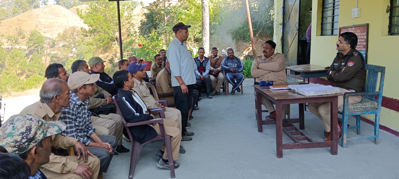 अल्मोड़ा-दिनांक 15.11.2024 को नव नियुक्त थानाध्यक्ष सल्ट प्रमोद पाठक ने थाने में नियुक्त अधि0/कर्म0गणों के साथ गोष्ठी का आयोजन कर एसएसपी द्वारा दिये गये आदेश निर्देशों से अवगत कराया गया और आदेश-निर्देशो का अनुशासन में रहते हुए पालन करने हेतु बताया गया।साथ ही थाना परिसर में थाना क्षेत्र के जनप्रतिनिधियों के साथ मीटिंग की गई,क्षेत्र की समस्याओं के बारे में सुझाव लिए गए तथा सभी लोगों से सहयोग की अपेक्षा की गई।उपस्थित गणमान्य लोगों द्वारा पुलिस को सहयोग देने का आश्वासन दिया गया।इसके अतिरिक्त नवीन कानूनों, यातायात के नियमों,उत्तराखण्ड पुलिस एप,साईबर अपराध के प्रति एवं नशे के दुष्परिणामों के प्रति जागरुक किया गया तथा सभी को किराएदार सत्यापन कराने की अपील की गयी तथा उत्तराखण्ड पुलिस हेल्पलाईन नम्बर डायल 112, महिला हेल्प लाईन नंबर 1090, साइबर क्राइम हेल्पलाईन नम्बर 1930 के सम्बन्ध में जानकारी दी गई।