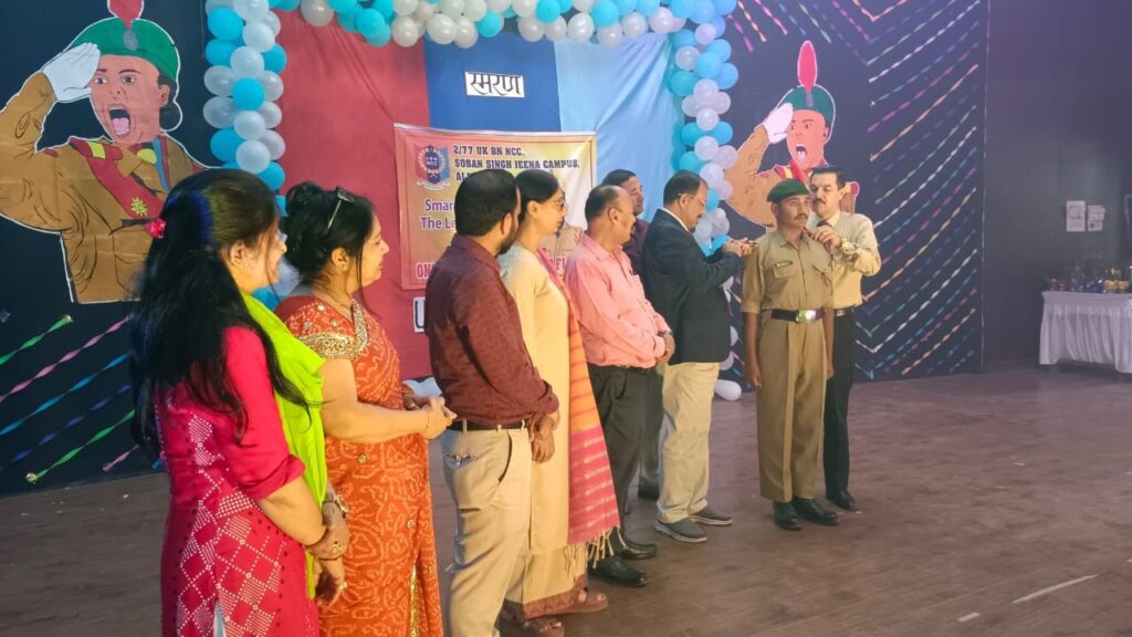 इस अवसर पर सीनियर अंडर ऑफिसर अंकित खेतवाल,अंडर ऑफिसर करन कुमार, प्रांजल कुंजवाल, मोनिका बोरा, नवीन गोश्वामी,सार्जेंट वैभव भट्ट,हिमानी तिवारी को रैंक प्रदान की गई।संचालन सुमन बिष्ट,वैभव भट्ट ने किया।