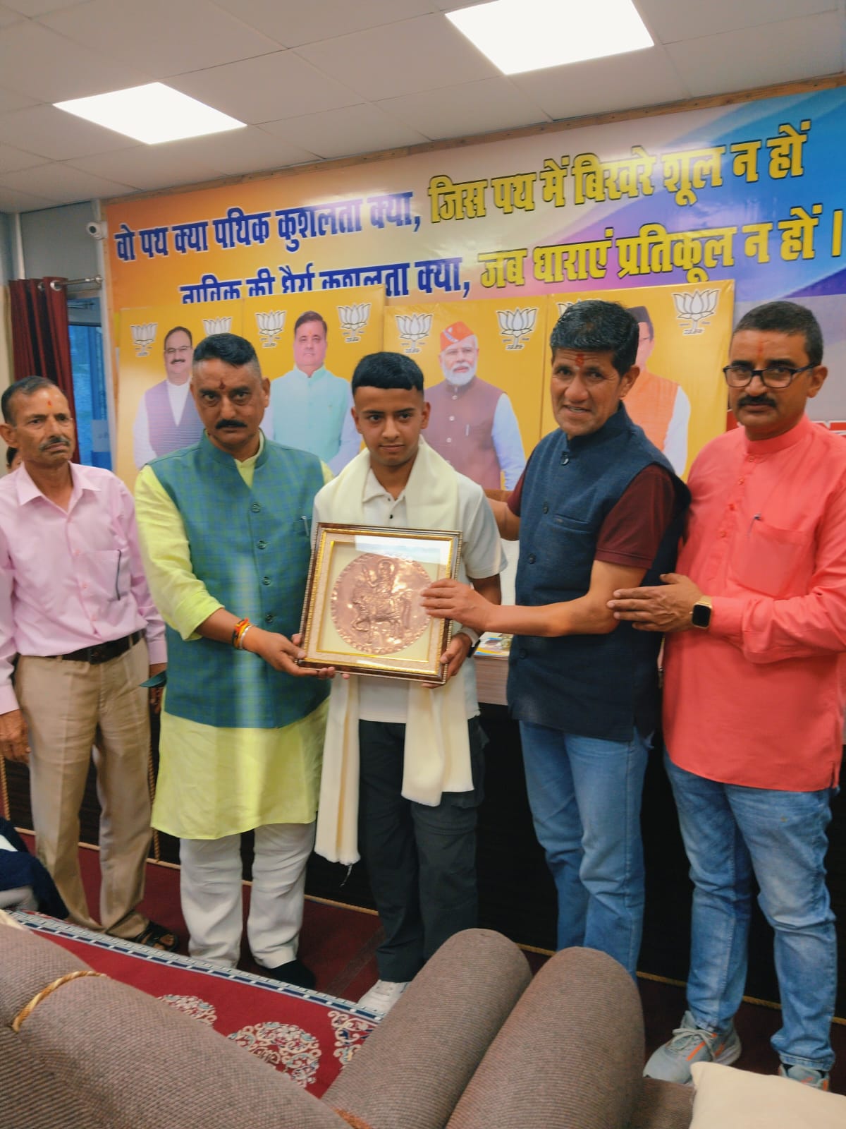 अल्मोड़ा-श्री भुवनेश्वर महादेव रामलीला कमेटी कर्नाटक खोला की सदस्य श्रीमती आशा मेहता के पुत्र अमन मेहता का प्रतिष्ठित राष्ट्रीय रक्षा अकादमी (एनडीए) में चयन होने पर नगर में हर्ष का माहौल है।आज श्री भुवनेश्वर महादेव रामलीला कमेटी कर्नाटक खोला (अल्मोड़ा) के संस्थापक/संयोजक पूर्व दर्जा मंत्री वरिष्ठ भाजपा नेता बिट्टू कर्नाटक ने अमन की इस उपलब्धि पर एक भव्य समारोह में उन्हें अपने कार्यालय में सम्मानित किया।इस अवसर पर श्री कर्नाटक ने कहा कि यह उपलब्धि न केवल मेहता परिवार के लिए गौरव का विषय है,बल्कि हम सभी के लिए भी अत्यंत हर्ष और गर्व का क्षण है, प्रतिभाशाली अमन ने अपने परिश्रम,समर्पण और संकल्प से यह सिद्ध किया है कि लक्ष्य कोई भी हो यदि इच्छा शक्ति प्रबल हो तो उसे प्राप्त किया जा सकता है, उन्होंने श्री भुवनेश्वर महादेव रामलीला कमेटी कर्नाटकखोला की ओर से मेहता परिवार को इस अद्वितीय सफलता के लिए बधाई दी एवं अमन मेहता के उज्ज्वल,सुरक्षित और गौरवपूर्ण भविष्य की मंगलकामना करते हुए कहा है कि अमन की यह उपलब्धि अन्य युवाओं के लिए भी प्रेरणास्रोत है,उन्होंने कहा कि अमन पूर्व से ही कर्नाटक खोला की रामलीला में भी अपना पूर्ण सहयोग करते आ रहे हैं,अमन की यह उपलब्धि युवाओं के लिए एक बड़ा संदेश है कि नशे से दूर रहकर अपनी दिनचर्या व्यवस्थित कर,अनुशासन के साथ अपने दैनिक क्रियाकलाप कर अपने लक्ष्य को प्राप्त कर सकते हैं।कार्यक्रम के मुख्य अतिथि मेयर अजय वर्मा ने कहा कि अल्मोड़ा एक ऐसी सांस्कृतिक धरती है जिसने एक से बढ़कर एक विभूति इस देश को दिये हैं,उन्होंने कहा कि शिक्षा का क्षेत्र,देश सेवा की बात,राजनीति के क्षेत्र में अथवा संस्कृति के क्षेत्र में या प्रशासनिक सेवा के क्षेत्र में हो अल्मोड़ा की धरती ने ऐसे अनेक महान विभूति इस देश को दिए हैं,जिन्होंने विश्व पटल पर अल्मोड़ा का नाम रोशन करने का कार्य किया है।श्री वर्मा ने अल्मोड़ा के युवाओं से अपील की कि युवा भटकाव के मार्ग एवं नशे के मार्ग से हटकर अपना भविष्य संवारने के लिए अनुशासनात्मक तरीके से दृढ़ निश्चय के साथ अपने जीवन को सफलता के उच्च शिखर तक ले जाएं।उन्होंने कहा कि पहाड़ के युवाओं में काबिलियत की कोई कमी नहीं है यदि युवा अपनी शक्ति का सदुपयोग सही दिशा में करें तो निश्चित रूप से आने वाले समय में वे अपना एवं अपने परिवार का और इस अल्मोड़ा का नाम विश्व पटल पर रोशन करेंगे। इस अवसर पर मुख्य रूप से सुनील कर्नाटक,रमेश जोशी,पवन जोशी,देवेन्द्र कर्नाटक,अशोक सिंह, भूपेंद्र सिंह,अमर बोरा,सुधीर कुमार, प्रकाश मेहता,अनिल जोशी,सुनीता बगडवाल,गंगा भट्ट,सीता रावत,पूजा बगडवाल,सीमा कर्नाटक,पायल काण्डपाल,रेखा जोशी,सोनिया कर्नाटक,मीनाक्षी जोशी,कंच