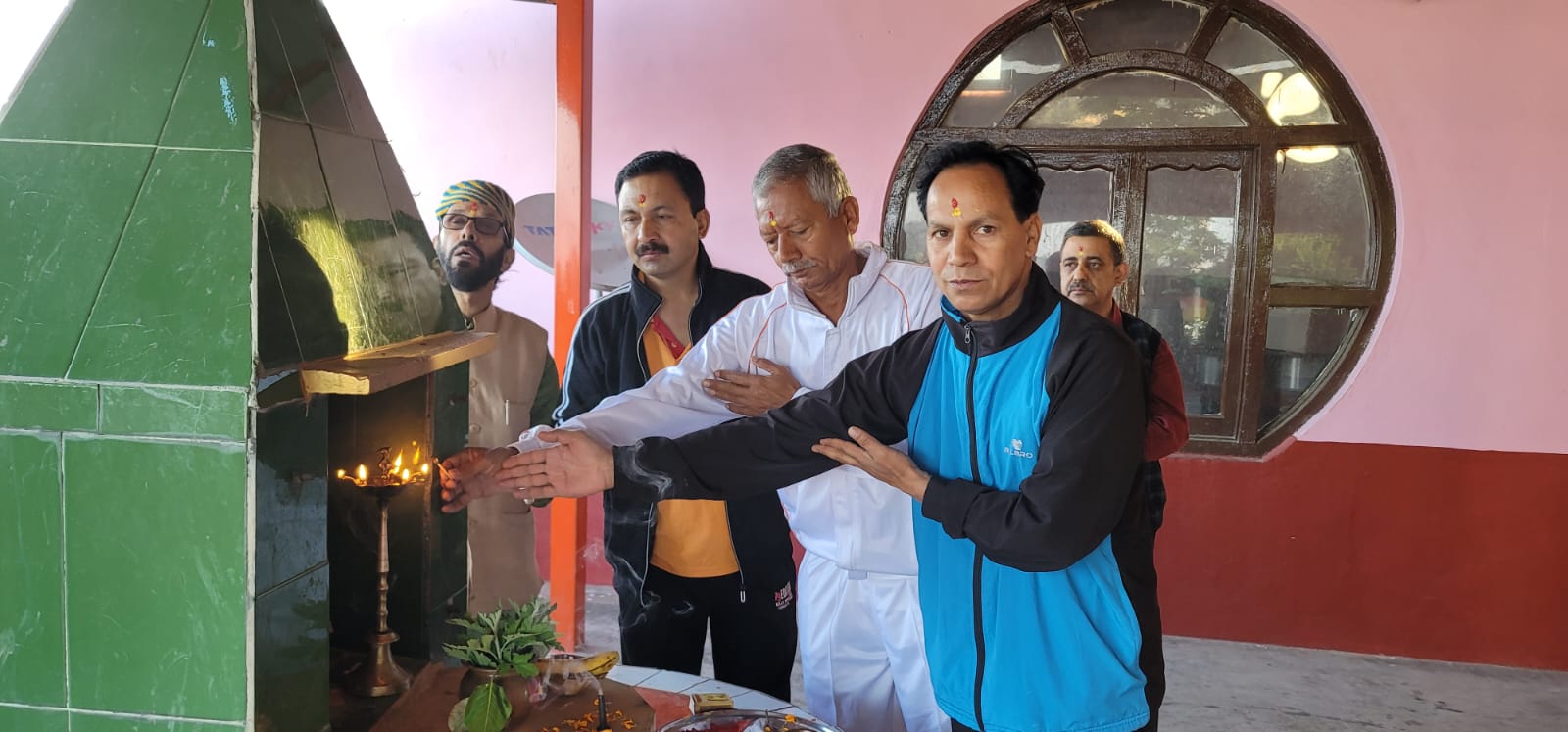 अल्मोड़ा -आज साईं बाबा मंदिर अल्मोड़ा में निशुल्क योग प्रशिक्षण शिविर पतंजलि योगपीठ हरिद्वार के तत्वावधान में पतंजलि योगपीठ अल्मोड़ा शाखा के जिला प्रभारी दीपचंद बिष्ट द्वारा आयोजित किया गया।उनके मार्गदर्शन में 5 दिवसीय नि:शुल्क योग प्रशिक्षण शिविर का प्रातः 5:30 बजे दीप प्रज्वलित कर विधिवत् शुभारम्भ किया गया। उपास्थित प्रशिक्षुओ का रोगानुसार और बेहतर स्वास्थ लाभ हेतु निःशुल्क योग शिविर में आसपास के सभी आम जनमानस को योगाभ्यास कराया गया और विभिन्न आसनों प्राणायाम के द्वारा प्रत्येक उपस्थित जन के योग द्वारा उपचार और कारणों को जानकर समाधान दिया गया।प्राणायाम और योग के द्वारा जन-जन को योग घर घर योग सभी रहे स्वस्थ और निरोग इस अभियान और नारे के साथ सभी ने आज प्रथम दिवस में योग का अभ्यास किया गया, प्राणायाम की विद्या सीखी गई और उनके द्वारा रोग और समस्याओं का समाधान जानने की कोशिश की गई।इस दौरान श्रीमती तुलसी सिराड़ी,श्रीमती माया भोज,कमल कुमार बिष्ट,रूप सिंह,जसोद सिंह बिष्ट सहित जिला प्रभारी एवं राज्य प्रभारी उपस्थित रहे और योग के महत्व को समझाते हुए अधिक से अधिक संख्या में निशुल्क योग शिविर में आकर उसके महत्व को समझते हुए अपनी दिनचर्या में शामिल करने को और इसका लाभ उठाने तथा अपनाने के लिए कहा गया।साईं बाबा मंदिर कमेटी अल्मोड़ा के अध्यक्ष भास्कर शाह एवं राघव पंत मंदिर समिति के प्रबंधक का आभार व्यक्त करते हुए दीपचंद बिष्ट ने बताया कि साईं बाबा मंदिर में पांच दिवसीय योग शिविर के लिए अध्यक्ष एवं प्रबंधक के साथ साथ मंदिर के पुजारी और समिति के पदाधिकारियों गणों ने निःशुल्क योग शिविर आयोजित कराने में अपनी महत्वपूर्ण भूमिका निभाते हुए योगाभ्यास हेतु संसाधनों (आवश्यक सामग्री) का प्रबंधन कर अपना समर्थन एक सहयोग प्रदान किया।