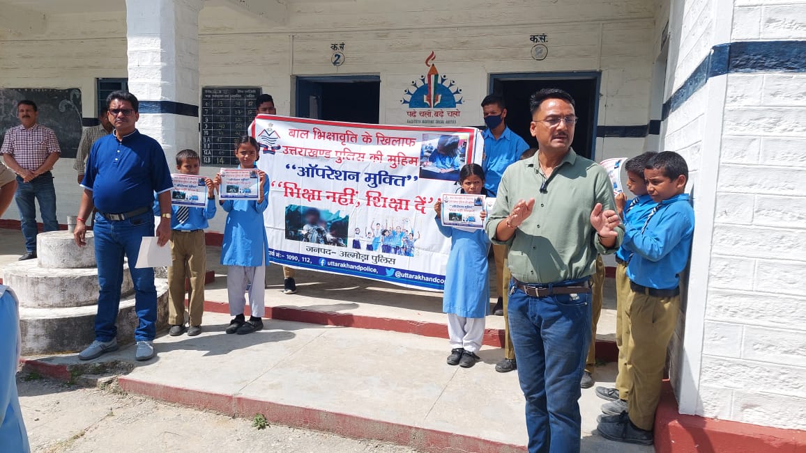 अल्मोड़ा-पुलिस महानिदेशक उत्तराखण्ड अशोक कुमार के निर्देश पर आपरेशन मुक्ति भिक्षा नहीं,शिक्षा दें के तहत उत्तराखण्ड में भिक्षावृति में लिप्त बच्चों की शिक्षा व उनके पुनर्वास हेतु 1 अगस्त 2022 से 02 माह का आपरेशन मुक्ति अभियान चलाया जा रहा है।प्रदीप कुमार राय एसएसपी अल्मोड़ा के निर्देशन पर विमल प्रसाद सीओ अल्मोड़ा के नेतृत्व में दिनांक 25/08/2022 को आँपरेशन मुक्ति टीम द्वारा अल्मोड़ा जीआईसी मैदान में लगे कुमाँऊ महोत्सव मेले,नगर के विभिन्न क्षेत्रों मे लोगों व 26/08/2022 को राजकीय इण्टर काँलेज लोधिया अल्मोड़ा के छात्र-छात्राओं व अध्यापकों को पम्पलेट बाटकर व बैनर लगाकर छोटे बच्चों को बाल श्रम ना करवाने व भिक्षा ना देने के लिए जागरुक करते हुए अपील कर कहा कि अगर आपको कही भी इस प्रकार से छोटे बच्चें भिक्षा मागते हुए या बाल श्रम करते हुए दिखे तो इसकी सूचना तत्काल पुलिस को दें,जिसमें पुलिस द्वारा आवश्यक कार्यवाही की जायेगी, भिक्षा मांग रहे बच्चों को शिक्षा ग्रहण करने के लिए प्रेरित करें,जिससे भिक्षावृत्ति में लगे बच्चों को भिक्षा से शिक्षा की ओर अग्रसर कर उनके भविष्य को उज्जवल बनाने में सफलता मिल सकें।अभियान का उद्देश्य भिक्षावृति में लगे बच्चों को भिक्षा से मुक्ति देकर,शिक्षा की ओर अग्रसर करना है।नगर में जगह जगह पम्पलेट बाँटकर व बैनर लगाकर लोगों को बच्चों को भिक्षा ना देने,बच्चों व उनके परिजनों को शिक्षा के लिए प्रेरित कर बच्चों के भविष्य को सवारने में सहयोग प्रदान करने के लिए जागरुक किया गया।भिक्षा नही शिक्षा दें जागरुकता अभियान के दौरान आँपरेशन मुक्ति टीम के कानि अनिल कुमार,कानि बालम सिंह,महिला का पायल मौजूद रहे।