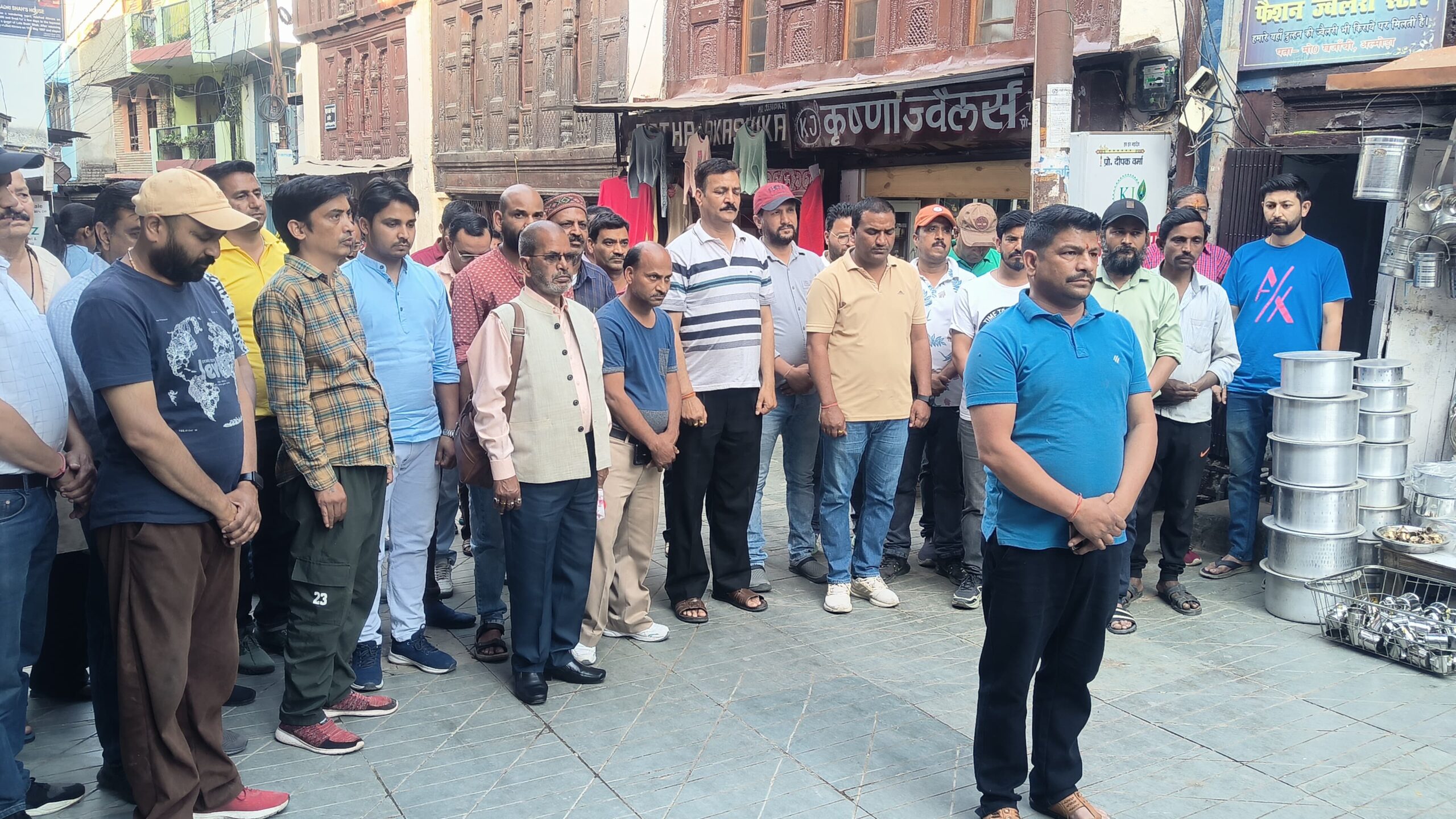 अल्मोड़ा-प्रांतीय उधोग व्यापार प्रतिनिधि मंडल द्वारा पहलगाम में आतंकवादियों द्वारा निर्दोष हिंदुओं की निर्मम हत्या पर शोक व्यक्त किया गया और भारत सरकार से यह अपील की कि एक बड़ा कदम उठाया जाय और इसे राजनीति मुद्दा न बनाकर देश हित में कदम उठाया जाए। सभी व्यापारियों ने एक आवाज में केंद्र सरकार को राजनीति से ऊपर उठकर कदम उठाने के लिए कहा।शोक सभा में जिलाध्यक्ष सुशील साह,महामंत्री भैरव गोस्वामी,कार्यकारी जिलाध्यक्ष संजय अग्रवाल,संयुक्त महामंत्री दिनेश मठपाल,जिला मंत्री राकेश तिवारी, उपाध्यक्ष विजय भट्ट,आशु गोस्वामी, नगर महासचिव वकुल साह,सह सचिव अश्वनी नेगी, महेश चंद्र आर्य, दीप डांगी,कार्तिक साह,रक्षित कार्की, रंजन गुप्ता, बबलू गुप्ता,कैलाश वाणी, राकेश साह,राजेश साह,दानिश खान,मोहम्मद बिलाल,मनोज वर्मा, अजीम अंसारी,साख़िब सिद्दकी,दलबीर सिद्दीकी,प्रतेश पांडे, संजय मेहरा,विजय भट्ट,दीपक नायक,नरेंद्र कुमार,अमित साह,अवि वर्मा,सुमित वर्मा,विजय साह,हिमांशु जोशी,रोहित जोशी सहित दर्जनों व्यापारी उपस्थित रहे।