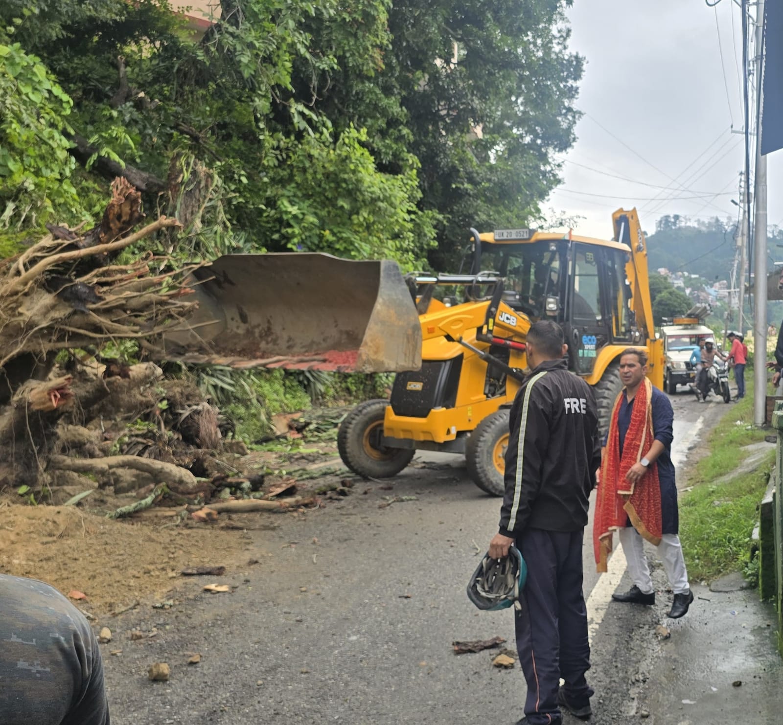 अल्मोड़ा-नगर के पाण्डेखोला में जर्जर स्थिति में पहुंच गया एक सूखा पेड़ लगातार दुर्घटना का सबब बना हुआ था।जिसका स्थानीय लोगों की सूचना पर पूर्व दर्जा मंत्री बिट्टू कर्नाटक पार्षद अमित साह मोनू ने तुरन्त संज्ञान लिया।उनके द्वारा जिलाधिकारी,एस एस पी,आपदा एवं नगर निगम से इस सम्बन्ध में वार्ता की गयी तथा अविलंब जनहित में पेड़ को गिराने की मांग की गयी। अधिकारियों एवं प्रशासन के द्वारा इस पर तुरन्त संज्ञान लेकर आपदा प्रबंधन,नगर निगम,फायर सर्विस तथा एनडीआरएफ की टीमें मौके पर भेजी गयी जिसके बाद पेड़ काटने की कार्यवाही प्रारम्भ हुई।पार्षद भी इस दौरान मौके पर मौजूद रहे।आज प्रातः पेड़ को काटकर दुर्घटना के भय को समाप्त किया गया।पार्षद एवं स्थानीय लोगों ने त्वरित कार्यवाही के लिए जिलाधिकारी एवं एस एस पी को विशेष धन्यवाद ज्ञापित किया।पेड़ काटने के अभियान में स्वयं मौका स्थल पर आपदा प्रबंधन अधिकारी विनीत पाल फायर सर्विस अल्मोड़ा टीम से गिरीश धारियाल, मुकेश सिंह पथनी,धीरेंद्र सिंह बिष्ट,प्रेम सिंह,चंद्र जोशी,आपदा टीम से भुवन काण्डपाल,आलोक वर्मा,गोविन्द सतवाल,नगर निगम के कर्मचारी सहित पूर्व दर्जा मंत्री बिट्टू कर्नाटक, पार्षद ज्योति साह, अमित साह मोनू,अभिषेक जोशी व अर्जुन बिष्ट उपस्थित रहे, उन्होंने प्रशासन का तत्काल इस कार्य का संज्ञान लेने के लिए आभार व्यक्त किया।