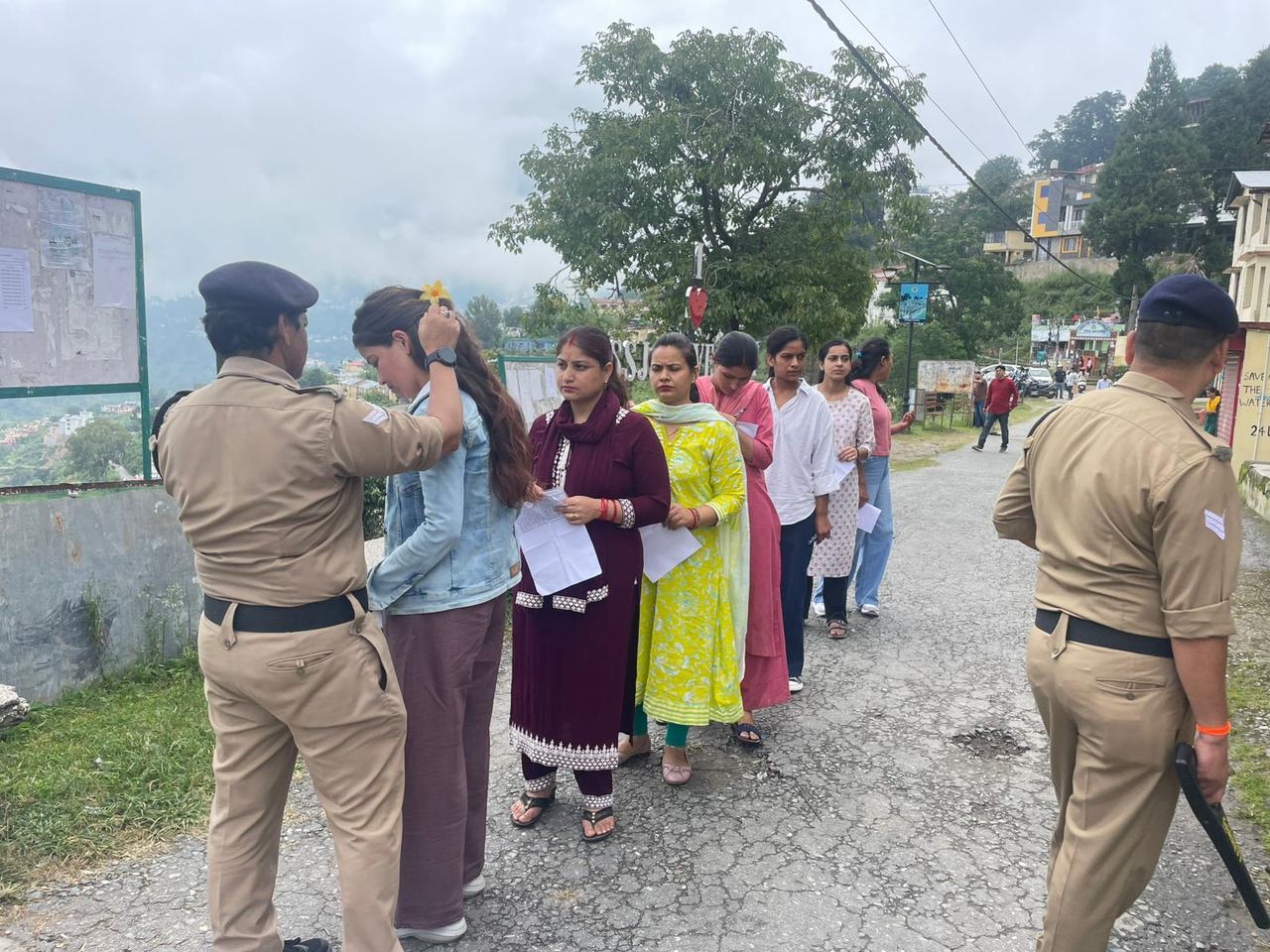 अल्मोड़ा-देवेन्द्र पींचा एसएसपी अल्मोड़ा द्वारा आज दिनांक 24.08.2025 को अधीनस्थ सेवा चयन आयोग द्वारा आयोजित होने वाली प्रयोगशाला सहायक (रसायन विज्ञान, वनस्पति विज्ञान, उद्यान विज्ञान, पशुपालन विभाग) / मशरूम पर्यवेक्षक वर्ग-3 परीक्षा 2025 को शांतिपूर्ण ढंग से सकुशल सम्पन्न कराने हेतु जनपद के सभी 06 परीक्षा केन्द्रो पर सुरक्षा के कड़े इंतजाम किए गए हैं।परीक्षा ड्यूटी में लगे समस्त पुलिस बल को ड्यूटी के दौरान अलर्ट मोड में रहने की सख्त हिदायत दी गई है।एस एस पी अल्मोड़ा के सख्त निर्देश पर पुलिस बल की कार्यवाही-