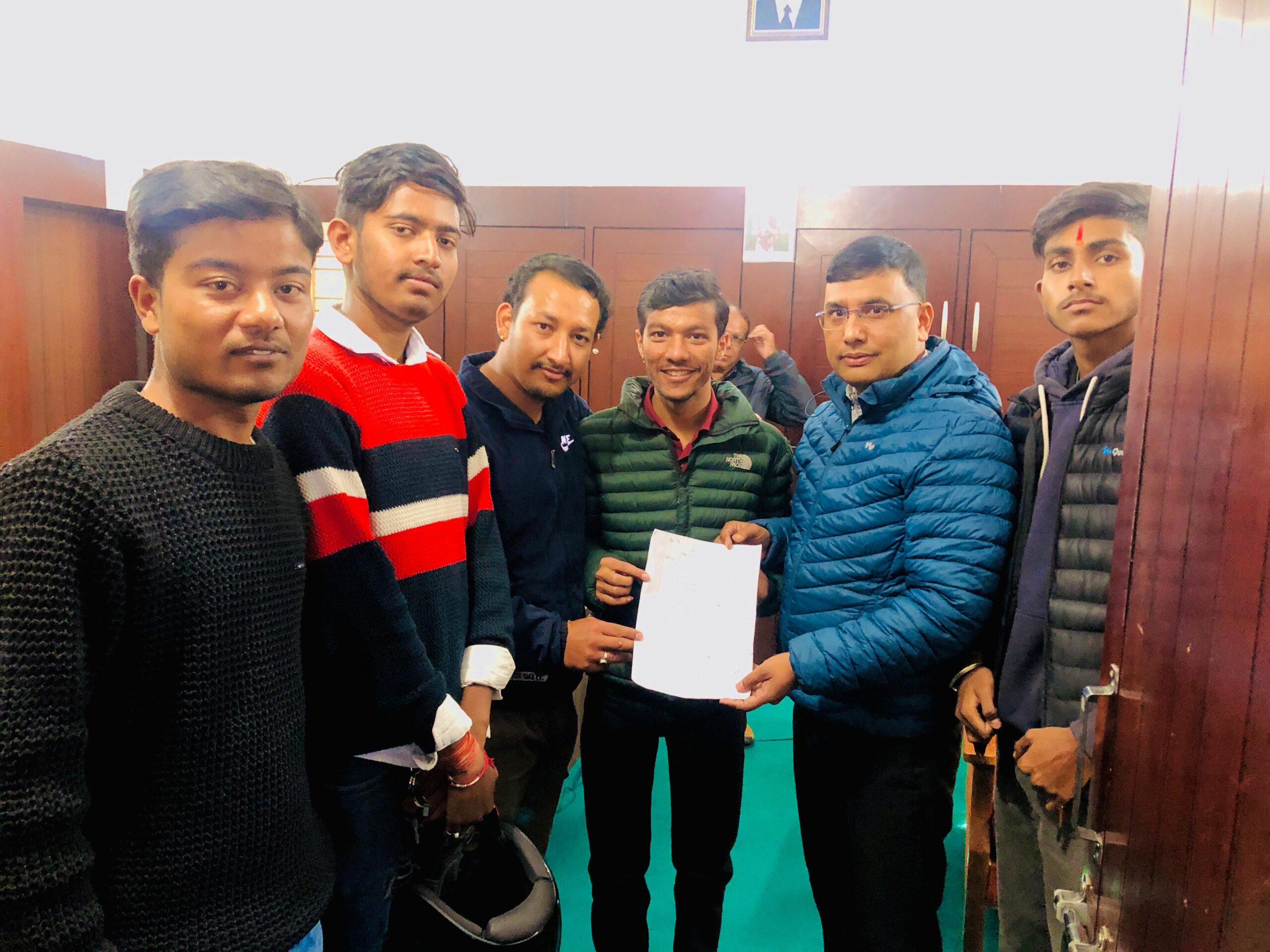 अल्मोड़ा-आज आर्यन छात्र संगठन अल्मोड़ा ने परीक्षा नियंत्रक सोबन सिंह जीना विश्वविद्यालय अल्मोड़ा को ज्ञापन प्रेषित किया जिसमें सत्र 2023-24 स्नातक प्रथम सेमस्टर बीए,बीकाम,बीएससी की परीक्षा तिथि को पीछे करने की मांग की।कहा गया कि चुनाव व त्योहारों के चलते कई छात्र छात्राओं द्वारा परीक्षा फॉर्म भी नही भरा गया है जिसके कारण उन्हें काफी दिक्कतों का सामना करना पड़ रहा है।आर्यन छात्र संगठन द्वारा जल्द से जल्द परीक्षा तिथि को आगे बढ़ाने व परीक्षा फॉर्म भरने की तिथि को बढ़ाने की मांग की और कहा कि जल्द इसमें कार्यवाही नही हुई तो आर्यन छात्र संगठन अल्मोड़ा समस्त छात्र समुदाय के साथ उग्र आंदोलन हेतु बाध्य होगा।ज्ञापन देने वालों में निवर्तमान छात्रसंघ महासचिव गौरव भंडारी,पूर्व छात्रसंघ कोषाध्यक्ष अभिषेक बनौला,पंकज कनवाल,निशान्त पांडेय,कुणाल आदि छात्र मौजूद रहे।