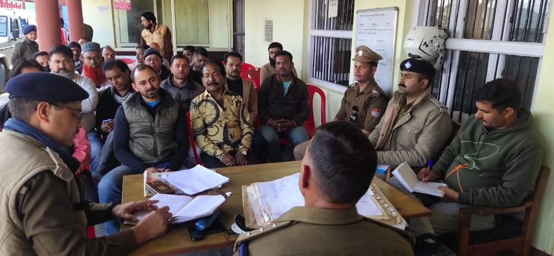 पिथौरागढ़-पुलिस अधीक्षक पिथौरागढ़ लोकेश्वर सिंह के आदेशानुसार पुलिस उपाधीक्षक पिथौरागढ़ महेश चन्द्र जोशी की अध्यक्षता में दिनांक 12.03.2022 को कोतवाली पिथौरागढ़ में थाना कोतवाली क्षेत्रान्तर्गत निवासरत समस्त समुदाय के गणमान्य व्यक्तियों, स्थानीय व्यापारियों/व्यापार मण्डल पदाधिकारियों/सीएलजी सदस्यों व संभ्रान्त व्यक्तियों के साथ आगामी त्यौहारों के दौरान आपसी भाईचारा /सौहार्द व शांति एवं कानून व्यवस्था बनाए रखने,कोविड-19 के नियमों का पालन करने एवं होली व शब-ए-बारात पर्वों को सकुशल संपन्न कराए जाने के सम्बन्ध में गोष्ठी का आयोजन किया गया,जिसमें थाना क्षेत्रान्तर्गत निवास करने वाले गणमान्य व्यक्ति व स्थानीय व्यापारीगण उपस्थित रहे।मीटिंग के दौरान उपस्थित सभी गणमान्य व्यक्तियों से उनकी समस्याएं/सुझाव सुने गए एवं आगामी त्यौहारों के दौरान शांति एवं कानून व्यवस्था बनाए रखने हेतु बताया गया,मीटिंग में उपस्थित व्यापारियों/सम्भ्रान्त व्यक्तियों से अपील की गई कि आगामी होली व शब-ए-बारात पर्वों के दौरान अपनी-अपनी दुकान/कॉन्प्लेक्स में सीसीटीवी अनिवार्य रूप से सुचारू रखेंगे।सभी को आपसी भाईचारे के साथ उक्त पर्वों को शान्ति पूर्वक मनाने हेतु अपील की गयी।इस अवसर पर प्रभारी निरीक्षक कोतवाली पिथौरागढ़ मोहन चन्द्र जोशी निरीक्षक एलआईयू,रोहित जोशी,उ०नि० सोमेन्द्र सिंह,उ०नि०जावेद हसन, चौकी प्रभारी एचोली,उ०नि०राकेश राय,चौकी प्रभारी घाट उ०नि०अनिल कुमार,उ०नि०बसन्त पन्त,उ०नि०संजय सिंह आदि अधिकारी/कर्मचारी गण,व्यापार मण्डल पदाधिकारियों/सीएलजी सदस्य व विभिन्न समुदाय के गणमान्य व्यक्ति उपस्थित रहे।