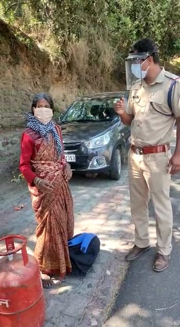 अल्मोड़ा-अशोक कुमार पुलिस महानिदेशक उत्तराखण्ड महोदय द्वारा चलाया गया मिशन हौसला से लोगों को जितनी उम्मीदें है पुलिस भी उतनी ही तत्परता से कोरोना महामारी के इस दौर में लोगों की निःस्वार्थ भाव से सेवा में लगी है।दिनाँक 27.05.2021 को एक वृद्ध महिला बचुली देवी बाजार अपने पुत्र के साथ सिलेंडर भरवाने आई थी।पूछने पर उनके द्वारा बताया गया कि हम लोग बहुत दूर अपने गांव से यहां सिलेंडर भरवाने आए थे बस हमारे पास सिलेंडर भरवाने के ही पैसे थे अब हम वापस अपने गांव को जा रहे हैं हमारे पास पैसे ना होने के कारण हम पैदल ही अपने गांव को जाएंगे इस पर गांव का पैदल मार्ग बहुत दूरी का होने के कारण उप निरीक्षक ब्रजमोहन व कांस्टेबल देवेंद्र तोमक्याल द्वारा स्वयं अपने निजी वाहन में उनको उनके गंतव्य स्थान तक छोड़ा गया जिनके द्वारा बताया गया कि हम लोग बहुत गरीब हैं इस पर उक्त लोगों बाजार खुलने पर थाना आने व थाने से हर संभव मदद देने का आश्वासन दिया गया।उक्त लोगो द्वारा पुलिस का सहृदय धन्यवाद अदा किया गया।