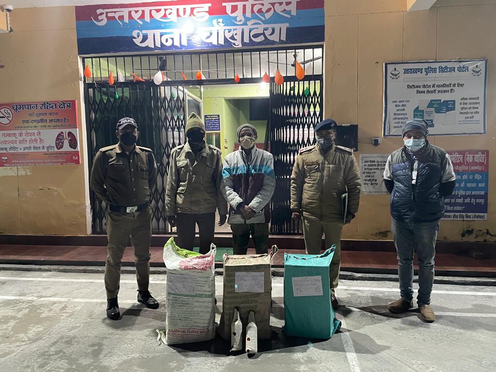 अल्मोड़ा-विधानसभा चुनाव को निष्पक्ष, सकुशल एवं शांतिपूर्ण सम्पन्न कराने हेतु डॉ० मन्जूनाथ टीसी,वरिष्ठ पुलिस अधीक्षक अल्मोड़ा द्वारा सभी थाना प्रभारी/एसओजी/एफएसटी एवं एसएसटी को जनपद की सीमाओं में बने बैरियरों एवं अपने-अपने क्षेत्रों में लगातार सघन चैकिंग किये जाने तथा मादक पदार्थों की तस्करी कर चुनाव को प्रभावित करने वाले तत्वों के विरुद्ध कड़ी कार्यवाही करने के निर्देश पर अल्मोड़ा पुलिस अलग-अलग तीन मामलों में 1,88,310 रूपये की अंग्रेजी शराब बरामद कर 3 व्यक्तियों को गिरफ्तार किया है।एसओजी/अल्मोड़ा पुलिस ने दिनॉक- 5.02.2022 को ओशीन जोशी पुलिस उपाधीक्षक ऑपरेशन के नेतृत्व में पुलिस एवं एसओजी द्वारा गणेशीगैर धारानौला में किशन सिंह उम्र72 वर्ष पुत्र विशन सिंह निवासी गोलना करड़िया स्थित मकान 14 पेटी अलग अलग ब्राण्ड की अंग्रेजी शराब बरामद कर किशन सिंह को गिरफ्तार कर कोतवाली अल्मोड़ा में मु०अ०सं० 14/2022 धारा- 60 आबकारी अधिनियम के अन्तर्गत अभियोग पंजीकृत कर आवश्यक कार्यवाही की गयी है।बरामदगी में 14 पेटी अंग्रेजी शराब अलग-अलग ब्राण्ड,कीमत 1,26550 रूपये बरामद हुई।पुलिस टीम में उ०नि० संजय जोशी चौकी प्रभारी धारानौला,का० हिमॉशू कोतवाली अल्मोड़ा,का० दीपक खनका एसओजी,का० दिनेश नगरकोटी एसओजी,का० राजेश भट्ट एसओजी,का० संदीप एसओजी शामिल रहे।थाना भतरौजखान में दिनॉक 5.02.2022 को थानाध्यक्ष अनीश अहमद द्वारा दौराने सघन चैकिंग में यात्री प्रतिक्षालय ग्राम मछोड़ में विनोद सत्यवली उम्र 27 वर्ष पुत्र स्व० शम्भू दत्त निवासी- मछोड़ भतरौजखान के कब्जे से तीन प्लाटिक के कट्टों से 5 पेटियों में से कुल 239 पव्वे अलग-अलग ब्रान्ड अंग्रेजी शराब बरामद कर विनोद सत्यवली को गिरफ्तार कर आबकारी अधिनियम के अन्तर्गत अभियोग पंजीकृत किया गया है।बरामदगी में 5 पेटी में 239 पव्वे अंग्रेजी शराब के बरामद हुए हैं जिसकी कीमत 26,760 रूपये है।पुलिस टीम में थानाध्यक्ष अनीश अहमद,का० सतपाल सिंह,का० नवीन पाण्डे थाना चौखुटिया शामिल रहे। दिनॉक 5.02.2022 को थाना चौखुटिया पुलिस एवं FST टीम द्वारा दौराने चैकिंग गिरीश चन्द्र पुत्र स्व० कृष्णानन्द के अन्नपूर्णा होटल एवं रेस्टोरेन्ट चौखुटिया के रेस्टोरेन्ट से 3 पेटी व्हिस्की व 3 पेटी रम बरामद कर गिरीश चन्द्र को गिरफ्तार कर थाना चौखुटिया में आबकारी अधिनियम के अन्तर्गत अभियोग पंजीकृत कर आवश्यक कार्यवाही की गयी है।बरामदगी में 6 पेटी अंग्रेजी शराब बरामद हुई है जिसकी कुल कीमत 35000 रूपये है।पुलिस टीम में रमेश चन्द्र पाण्डे (मजिस्ट्रेट/प्रभारी एफएसटी),उ०नि०देवेन्द्र राणा एफएसटी,का० दीपक कुमार एफएसटी शामिल रहे।