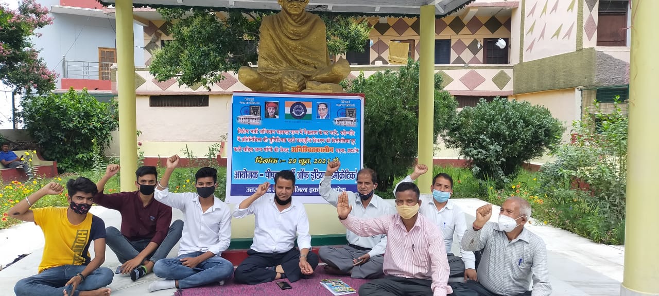 अल्मोड़ा-पीपल्स पार्टी ऑफ इंडिया डेमोक्रेटिक का बैकलॉग पदोन्नति में प्रतिनिधित्व व अन्य मांगों को लेकर अनिश्चितकालीन आंदोलन धरना चौथे दिन भी जारी रहा।धरना स्थल पर वक्ताओं ने मांग की बैकलॉग के पदों को विशेष भर्ती अभियान चलाकर भरा जाए।पदोन्नति में प्रतिनिधित्व इन वर्गों को पूर्व की भांति प्रदान किया जाए। अन्य पिछड़े वर्ग को भी इसका लाभ दिया जाए।राज्य आंदोलन में शामिल वाद्य यंत्र वादकों को राज्य आंदोलनकारी घोषित किया जाए।प्रदेश में कार्यरत स्वच्छताकर्मियों की ठेकेदारी प्रथा समाप्त कर उन्हें नियमित किया जाए।राज्य में निवासरत अनुसूचित जाति के पीढ़ियों से भूमि पर काबिज लोगों को मालिकाना हक प्रदान किया जाए। छात्रवृत्ति की विसंगतियों को दूर किया जाए।आज धरने पर पार्टी के प्रदेश अध्यक्ष एडवोकेट डॉ प्रमोद कुमार, प्रकाश चंद्र आर्या,सुरेश लाल,सुरेंद्र कुमार,हरीश लाल,दिनेश राज,रमेश चंद्र आर्य,महेश चंद आर्य,मोहन राम, मुकेश कुमार,रवि कुमार,सूरज कुमार आदि उपस्थित रहे।
