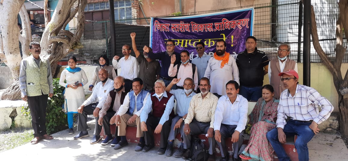 अल्मोड़ा-जिला स्तरीय विकास प्राधिकरण को समाप्त करने की मांग को लेकर सर्वदलीय संघर्ष समिति ने अपना आन्दोलन फिर से शुरू कर दिया है।आज सर्वदलीय संघर्ष समिति के संयोजक पालिकाध्यक्ष प्रकाश चन्द्र जोशी के नेतृत्व में समिति ने गांधी पार्क में धरना दिया और प्रदेश सरकार के खिलाफ जमकर नारेबाजी की।इस अवसर पर समिति के संयोजक पालिकाध्यक्ष प्रकाश चन्द्र जोशी ने कहा कि संघर्ष समिति पिछले पांच वर्षों से लगातार जिला स्तरीय विकास प्राधिकरण को समाप्त करने की मांग को लेकर संघर्षरत है लेकिन सरकार ने कुछ माह पूर्व प्राधिकरण को स्थगित करके इस मुद्दे पर अपनी इतिश्री कर ली।कांंग्रेस जिलाध्यक्ष पीताम्बर पाण्डे ने धरने को सम्बोधित करते हुए कहा कि प्रदेश की भाजपा सरकार सत्ते के नशे में चूर है इसी कारण पिछले पांच वर्षों से जनता के आन्दोलन के बाबजूद भी प्राधिकरण को समाप्त नहीं कर रही है।कांंग्रेस जिला प्रवक्ता राजीव कर्नाटक ने कहा कि प्रदेश की भाजपा सरकार ने नवम्बर २०१७ में तुगलकी फरमान से इस जिला स्तरीय विकास प्राधिकरण को लागू किया था जिसका लगातार संघर्ष समिति एवं जनता द्वारा विरोध किया जा रहा है।उन्होंने कहा कि प्रदेश सरकार स्पष्ट रूप से यह जान ले कि जब तक सरकार इस जनविरोधी प्राधिकरण को स्पष्ट आदेश के तहत समाप्त नहीं कर देती तब तक समिति का आन्दोलन जारी रहेगा।उन्होंने कहा कि आने वाले दिनों में आन्दोलन को और उग्र किया जाएगा।धरने की अध्यक्षता समिति के संयोजक पालिकाध्यक्ष प्रकाश चन्द्र जोशी तथा संचालन कांंग्रेस जिला प्रवक्ता राजीव कर्नाटक ने किया।धरने में पालिकाध्यक्ष प्रकाश चन्द्र जोशी,कांंग्रेस जिलाध्यक्ष पीताम्बर पाण्डे,कांंग्रेस नगर अध्यक्ष पूरन सिंह रौतेला,कांंग्रेस जिला प्रवक्ता राजीव कर्नाटक,कांंग्रेस जिला सचिव दीपांशु पाण्डे,आनन्द सिंह बगडवाल,राबिन मनोज भण्डारी, प्रताप सत्याल,अख्तर हुसैन,चन्द्र मणि भट्ट, राजू गिरी,लक्ष्मण सिंह ऐठानी,आनन्दी वर्मा,महेश आर्या,एन०डी०पाण्डे,भारतरत्न पाण्डे,हेम चन्द्र तिवारी,हेम जोशी,रघुवीर सिंह,ललित मोहन जोशी,दिनेश पाण्डे,एम०सी०काण्डपाल, सुनीता पाण्डे सहित दर्जनों लोग उपस्थित रहे।