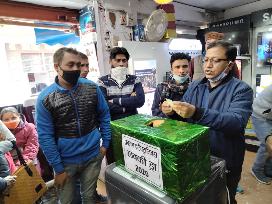 अल्मोड़ा-कचहरी बाजार स्थित शहर के प्रतिष्ठित इलेक्ट्रॉनिक्स शोरूम प्रकाश इलेक्ट्रॉनिक्स में दीपावली लक्की ड्रा खोले गये।जिसमें प्रथम पुरस्कार के रूप में आफीसर्स कालोनी के मनोज मर्तोलिया ने 32 इंच का एलईडी टीवी जीता।बाड़ेछीना की रश्मि सुप्याल ने द्वितीय पुरस्कार के रूप में फ्रिज अपने नाम किया।तृतीय पुरस्कार के विजेता रहे एनटीडी के दीपक जोशी जिन्होनें वाशिंग मशीन लक्की ड्रा में अपने नाम की।इसके अलावा एक सौ एक लोगों को सान्त्वना पुरस्कार भी प्रदान किये गये।विदित हो कि शहर के प्रतिष्ठित शोरूम के स्वामी प्रकाश रावत त्यौहारों में अपने ग्राहकों के लिए बेहद किफायती एवम् आकर्षक कीमतों के आफर अपने शोरूम में लाते रहते हैं।इस बार दीपावली में भी उनके शोरूम में उनके द्वारा आकर्षक स्कीमें लागू की गयी थी तथा खरीददरी करते वक्त ग्राहकों को लक्की कूपन भी वितरित किये गये थे।इस अवसर पर शोरूम के स्वामी प्रकाश रावत,विनोद वैष्णव,अम्बादत्त जोशी,इन्दर पाल,ऊमा कोरंगा,जानकी गोस्वामी, पूरन राम,तारा चन्द्र तिवारी, बिन्दु भण्डारी आदि उपस्थित रहे।