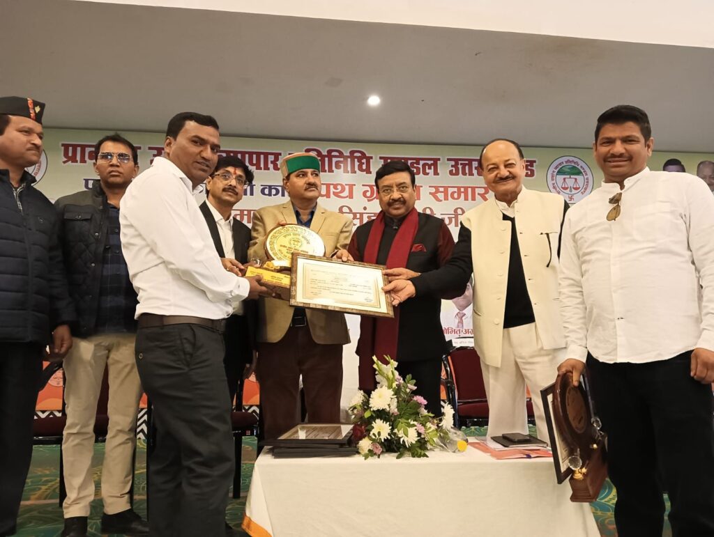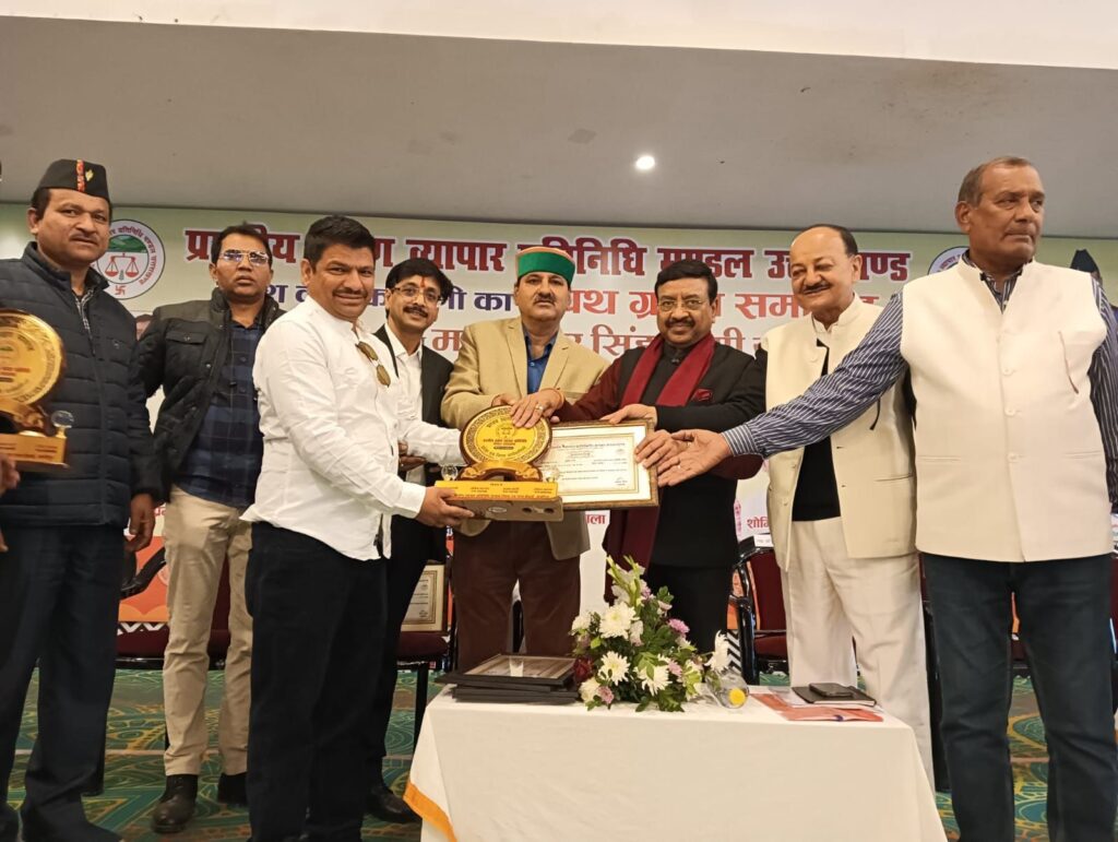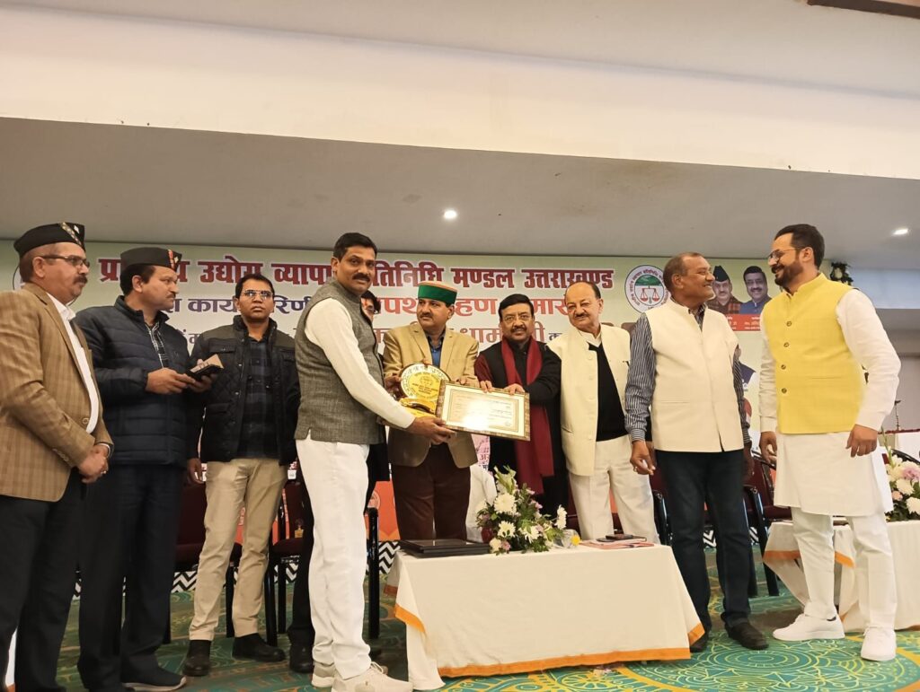देहरादून-दिनांक 25 दिसम्बर को प्रांतीय उद्योग व्यापार प्रतिनिधि मंडल के शपथ ग्रहण समारोह में प्रदेश पदाधिकारी और सभी जिलों के जिलाध्यक्षों की मुख्य मंत्री पुष्कर सिंह धामी द्वारा शपथ कराई गई।इस अवसर पर कैबिनेट मंत्री गणेश जोशी, काशीपुर विधायक,प्रांतीय उद्योग व्यापार प्रतिनिधि मंडल के चेयरमैन अनिल गोयल,प्रदेश अध्यक्ष नवीन वर्मा,महामंत्री प्रकाश मिश्रा, कोषाध्यक्ष राजेश अग्रवाल,प्रदेश उपाध्यक्ष मनोज अरोड़ा,संगठन प्रदेश मंत्री मनीष जोशी,प्रदेश मंत्री हरीश सोनी सहित सभी जिलों के जिलाध्यक्ष और भारी संख्या में व्यापारी बंधु उपस्थित रहे। अल्मोड़ा जिलाध्यक्ष सुशील साह ने कहा कि प्रांतीय उद्योग व्यापार प्रतिनिधि मंडल उत्तराखंड का सबसे मजबूत व्यापारी संगठन है जो व्यापारियों की हर दुख सुख में मजबूती से साथ खड़ा रहता है। उन्होंने बताया कि मुख्य मंत्री पुष्कर सिंह धामी द्वारा संगठन को हर संभव मदद करने की घोषणा की गई है।