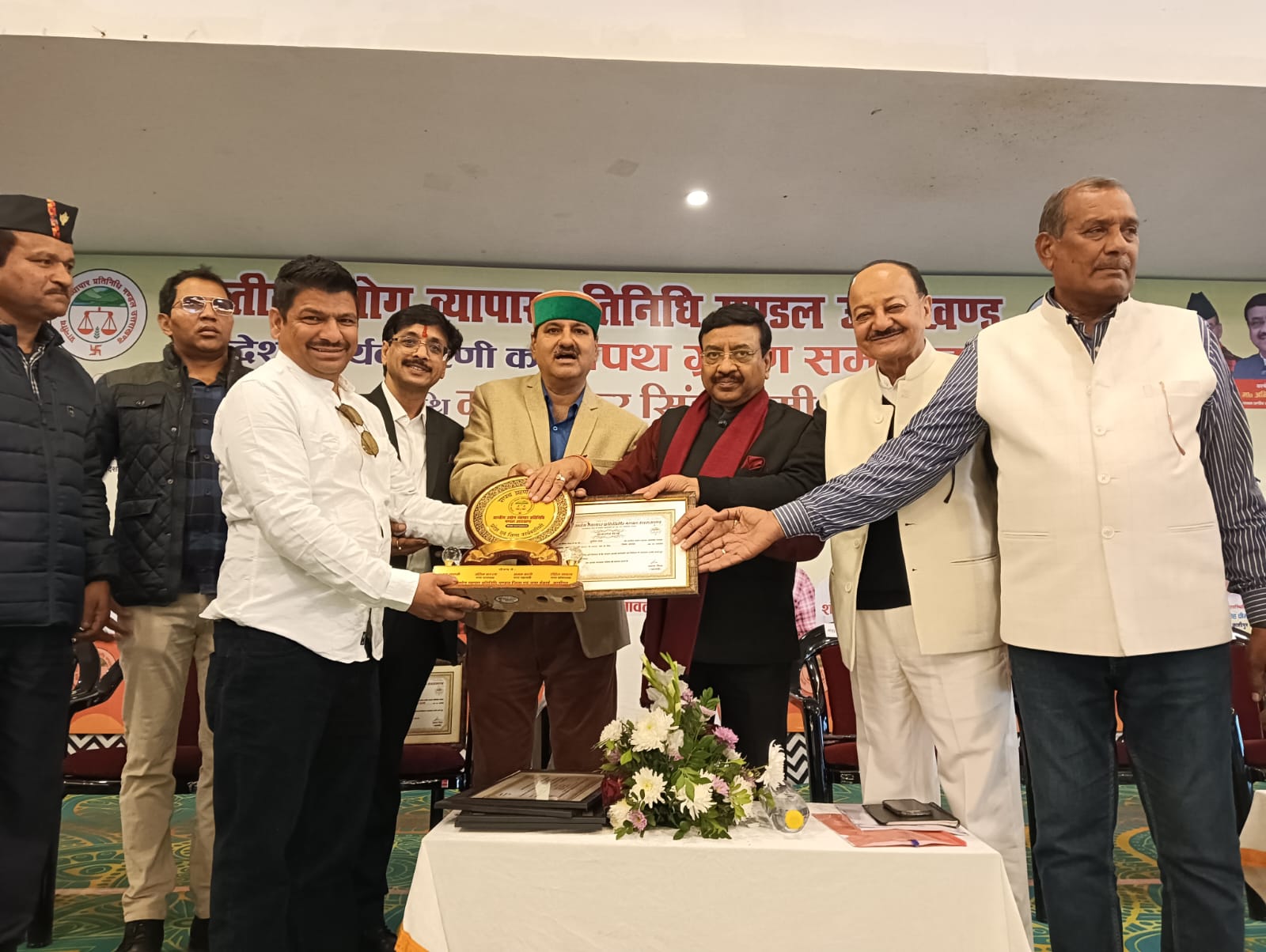 देहरादून-दिनांक 25 दिसम्बर को प्रांतीय उद्योग व्यापार प्रतिनिधि मंडल के शपथ ग्रहण समारोह में प्रदेश पदाधिकारी और सभी जिलों के जिलाध्यक्षों की मुख्य मंत्री पुष्कर सिंह धामी द्वारा शपथ कराई गई।इस अवसर पर कैबिनेट मंत्री गणेश जोशी, काशीपुर विधायक,प्रांतीय उद्योग व्यापार प्रतिनिधि मंडल के चेयरमैन अनिल गोयल,प्रदेश अध्यक्ष नवीन वर्मा,महामंत्री प्रकाश मिश्रा, कोषाध्यक्ष राजेश अग्रवाल,प्रदेश उपाध्यक्ष मनोज अरोड़ा,संगठन प्रदेश मंत्री मनीष जोशी,प्रदेश मंत्री हरीश सोनी सहित सभी जिलों के जिलाध्यक्ष और भारी संख्या में व्यापारी बंधु उपस्थित रहे। अल्मोड़ा जिलाध्यक्ष सुशील साह ने कहा कि प्रांतीय उद्योग व्यापार प्रतिनिधि मंडल उत्तराखंड का सबसे मजबूत व्यापारी संगठन है जो व्यापारियों की हर दुख सुख में मजबूती से साथ खड़ा रहता है। उन्होंने बताया कि मुख्य मंत्री पुष्कर सिंह धामी द्वारा संगठन को हर संभव मदद करने की घोषणा की गई है।