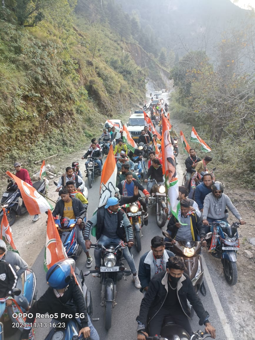 बागेश्वर-शनिवार को कवि जोशी जिलाध्यक्ष युवा कांग्रेस बागेश्वर के नेतृत्व में युवा कांग्रेस बागेश्वर द्वारा प्रथम बार बागेश्वर आगमन पर कांंग्रेस प्रदेश प्रभारी देवेन्द्र सिंह यादव व युवा कांग्रेस उत्तराखंड प्रदेश अध्यक्ष सुमित्तर भुल्लर का भव्य स्वागत किया।उसके बाद बागेश्वर भागीरथी से कपकोट कार्यक्रम स्थल तक युवा कांग्रेस बागेश्वर द्वारा बाइक रैली निकालते हुए प्रभारी व प्रदेश अध्यक्ष को ले जाया गया।जिसमे सेकड़ो युवा कार्यकर्ताओ ने भाग लिया।बाइक रैली में कवि जोशी जिलाध्यक्ष युवा कांग्रेस बागेश्वर,ईश्वर पांडे प्रदेश सचिव,अंकुर उपाध्याय प्रदेश प्रवक्ता,सुनील पांडे जिला कोषाध्यक्ष,जीवन पांडे अनुशासन समिति अध्यक्ष,रिजवान खान जिला उपाध्यक्ष,जयदीप कुमार जिला उपाध्यक्ष,मोहन कोरंगा विधानसभा अध्यक्ष कपकोट,नरेंद्र कोरंगा जिला महासचिव,गणेश कुमार जिला महासचिव,खजान खेतवाल जिला महासचिव,योगेश मेहता जिला सचिव,राकेश भट्ट जिला प्रवक्ता,खालिद हुसैन जिला प्रवक्ता, विशाल रावत जिला सचिव,फिरोज खान जिला सचिव,मोनीष खान जिला सचिव,जय रावत,कमलेश गढ़िया, धीरज गढ़िया,हिमांशु जोशी,संजय कुमार,प्रकाश वाचमी,अमन कुमार, मनोज कुमार,समीर,संस्कार भारती सोशल मीडिया नगर अध्यक्ष,हरीश मेहता,राहुल सिंह,निक्कू,सूरज सिंह,अमित सिंह नगरकोटी ,रोहित गढ़िया,तनुज दानू,मनोज,गिरीश कुमार,