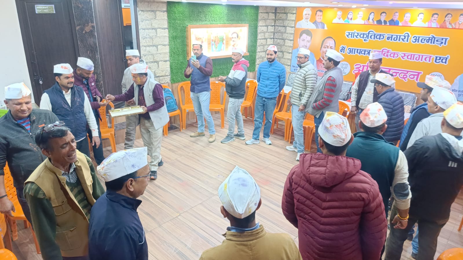 अल्मोड़ा- पूर्व भाजपा जिलाध्यक्ष रवि रौतेला के कार्यालय में पत्रकारों के साथ होली मिलन समारोह का आयोजन किया गया।कार्यक्रम में नगर एवं जिले के कई पत्रकारों ने भाग लिया और आपसी सौहार्द के साथ रंगों के इस पर्व की शुभकामनाएं साझा कीं।कार्यक्रम की शुरुआत पारंपरिक ढंग से एक-दूसरे को अबीर-गुलाल लगाकर की गई। इसके बाद ढोलक की थाप पर होली गायन आयोजित हुआ।इसके बाद चाय-नाश्ते के बीच अनौपचारिक चर्चा का दौर चला जिसमें समसामयिक मुद्दों पर विचार-विमर्श भी हुआ। इस अवसर पर रवि रौतेला ने अपने संबोधन में कहा कि लोकतंत्र में मीडिया की भूमिका अत्यंत महत्वपूर्ण है। पत्रकार समाज का दर्पण होते हैं, जो निष्पक्ष और निर्भीक होकर जनहित के मुद्दों को सामने लाते हैं। उन्होंने सभी पत्रकारों को होली की शुभकामनाएं देते हुए कहा कि ऐसे आयोजन आपसी संवाद और सकारात्मक संबंधों को मजबूत करते हैं।समारोह के दौरान उपस्थित पत्रकारों ने भी होली के पर्व को प्रेम,सद्भाव और एकता का प्रतीक बताया। सभी ने मिलकर समाज में सकारात्मक माहौल बनाए रखने का संकल्प लिया।अंत में सामूहिक फोटो सेशन के साथ कार्यक्रम का समापन हुआ।पूरा वातावरण रंग,उमंग और पारस्परिक सम्मान के भाव से सराबोर नजर आया। कार्यक्रम के दौरान भाजपा नगर अध्यक्ष विनीत बिष्ट सहित अन्य कार्यकर्ता एवं अनेक पत्रकार भी मौजूद रहे।