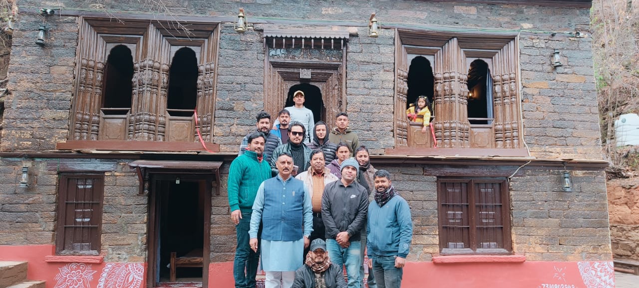 अल्मोड़ा-अल्मोड़ा के गोलूछीना में स्थानीय युवक के द्वारा पुराने मकान को कलात्मक रूप से पहाड़ी संस्कृति में सजाकर होम स्टे की शुरुआत की गयी है जिसका शुभारम्भ आज पूर्व दर्जामंत्री बिट्टू कर्नाटक ने रिबन काटकर किया।इस अवसर पर पूर्व दर्जामंत्री बिट्टू कर्नाटक ने कहा कि उद्यमिता का नायाब नमूना पहाड़ों के पुराने मकानों को होमस्टे के रूप में परिवर्तित करना भी है।इससे जहां एक ओर गांवों में खंडहर बन रहे पुराने मकानों का अस्तित्व भी हमारी भावी पीढ़ी के लिए बना रहेगा वहीं दूसरी ओर स्वरोजगार की दिशा में भी एक बेहद सकारात्मक पहल है। उन्होंने कहा कि हमारे स्थानीय युवा भूपेन्द्र भोज होम स्टे खोलकर ना सिर्फ अपने लिए रोजगार के अवसर पैदा करेंगे बल्कि इससे कुछ और स्थानीय युवाओं को भी रोजगार मिलेगा। उन्होंने कहा कि इस होम स्टे की सबसे अच्छी बात यह है कि इस होम स्टे के निर्माण में मकान की संरचना के साथ कोई छेड़ छाड़ नहीं की गयी है बल्कि इसे पुराने रूप में ही बेहद आकर्षक बनाने का प्रयास किया गया है जिससे पर्यटक इस ओर आकर्षित होंगे।इस अवसर पर विजय भण्डारी,सौरव तिवारी,राहुल खोलिया,महेंद्र बिष्ट, विनोद बिष्ट,सुन्दर बिष्ट,दीपक पोखरिया, हरीश भट्ट, प्रकाश मेहता,मोहन कनवाल,त्रिभुवन अधिकारी, प्रताप आर्य आदि लोग उपस्थित रहे।