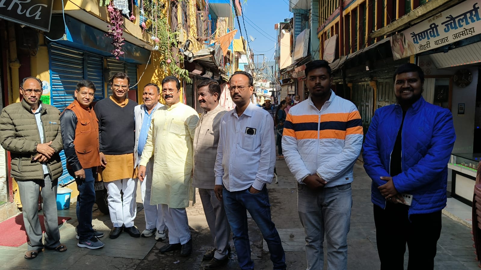 अल्मोड़ा-आज भारतीय जनता पार्टी के प्रदेश उपाध्यक्ष एवं पूर्व विधायक कैलाश शर्मा ने भारतीय जनता पार्टी के पदाधिकारी एवं कार्यकर्ताओं के साथ अल्मोड़ा बाजार का भ्रमण कर स्थानीय व्यापारियों एवं जनता को दीपावली की शुभकामनाएं दी।इस अवसर पर पूर्व विधायक कैलाश शर्मा ने कहा कि दीपावली हर्षोल्लास का त्यौहार है और उनकी ईश्वर से यह प्रार्थना है कि यह दीपावली सभी के लिए खुशियों का संदेश लेकर आए।भाजपा जिलाध्यक्ष रमेश बहुगुणा ने कहा कि दीपावली त्यौहार हमारी संस्कृति का प्रतीक है और हम सभी लोग इसे मिलजुल कर बेहद सौहार्दपूर्ण तरीके से मनाते हैं।भाजपा जिला मंत्री देवाशीष नेगी ने भी सभी क्षेत्रवासियों को दीपावली की शुभकामनाएं प्रेषित की।बाजार भ्रमण कार्यक्रम में पूर्व विधायक कैलाश शर्मा, जिलाध्यक्ष रमेश बहुगुणा,भाजपा जिला मंत्री देवाशीष नेगी,भाजपा जिला महामंत्री धर्मेन्द्र बिष्ट,भाजपा जिला उपाध्यक्ष कैलाश गुरुरानी,भाजयुमो नगर अध्यक्ष चन्दन बहुगुणा, व्यापार मंडल नगर अध्यक्ष अजय वर्मा,संजय साह रिख्खू,प्रकाश भट्ट,नगर मंत्री मोहित जोशी सहित दर्जनों भाजपा कार्यकर्ता शामिल थे।