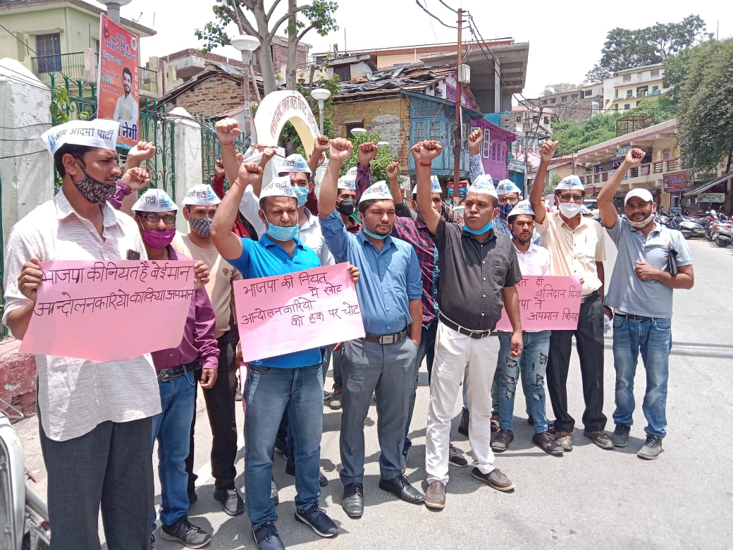 अल्मोड़ा-आम आदमी पार्टी प्रदेश उपाध्यक्ष अमित जोशी के नेतृत्व में आज अल्मोड़ा विधानसभा के कार्यकर्ताओं ने चौघानपाटा में राज्य आंदोलनकारियों के हितों की रक्षा करने में असफल रही भाजपा सरकार के खिलाफ जबरदस्त नारेबाजी एवं विरोध प्रदर्शन किया।आम आदमी पार्टी प्रदेश उपाध्यक्ष अमित जोशी ने कहा कि अगर सरकार में थोड़ी सी नैतिकता होती तो विधानसभा में विधायक लाकर इस पर एक कानून बनाती एवं आंदोलनकारियों की इस समस्या का निवारण करती।लेकिन सरकार ने ऐसा नहीं किया बल्कि विभागों को इन आंदोलनकारियों को हटाने का फरमान जारी कर दिया।इस प्रकरण में प्रदेश के लगभग 600 आंदोलनकारियों को सरकार द्वारा नोटिस भेजा जा रहा है कि हाईकोर्ट द्वारा आप को दिया हुआ आरक्षण समाप्त कर दिया गया है।अतः अब आप लोग अपनी सेवाएं सरकार को नहीं दे सकते।जबकि 12 से ज्यादा वर्षों से यह लोग कई सरकारी विभागों में अपनी सेवाएं दे रहे हैं।आम आदमी पार्टी प्रदेश उपाध्यक्ष अमित जोशी ने आगे कहा कि आम आदमी पार्टी हर उत्तराखंडी के हितों की और सम्मान की रक्षा करने के लिए प्रतिबद्ध हैं और राज्य आंदोलनकारियों के हक के लिए आम आदमी पार्टी कंधे से कंधा मिलाकर उनके साथ खड़ी है।कार्यक्रम में जिला उपाध्यक्ष आनंद सिंह बिष्ट,जिला महामंत्री जगमोहन फर्तियाल,प्रदेश प्रवक्ता युवा मोर्चा रोहित सिंह,प्रदेश महासचिव युवा मोर्चा नीरज सिंह,विधानसभा अध्यक्ष युवा मोर्चा सौरभ पांडे,अखिलेश टम्टा, नवीन चंद्र आर्य,दिनेश कुमार,एन एल शाह,सोहित भट्ट,दानिश कुरेशी,योगेंद्र अधिकारी,अरुण तिवारी,संदीप नयाल, अमान खान आदि मौजूद थे।