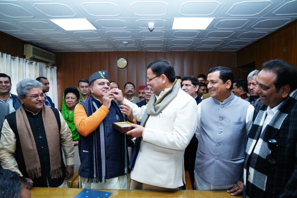 देहरादून-उत्तराखंड में राज्यसभा निर्वाचन की प्रक्रिया प्रारंभ हो गई है। इसी क्रम में आज भारतीय जनता पार्टी के प्रत्याशी महेंद्र भट्ट ने विधानसभा में रिटर्निंग अधिकारी के समक्ष अपना नामांकन दाखिल किया। उनके नामांकन के दौरान मुख्यमंत्री पुष्कर सिंह धामी एवं राष्ट्रीय महामंत्री दुष्यंत गौतम भी उपस्थित रहे।इस अवसर पर प्रदेश महामंत्री संगठन अजेय,हरिद्वार सांसद डॉ रमेश पोखरियाल निशंक,राज्यसभा सांसद अनिल बलूनी,टिहरी सांसद माला राज लक्ष्मी शाह,सांसद तीरथ सिंह रावत, के अलावा समस्त कैबिनेट मंत्री एवं विधायकगण उपस्थित रहे।