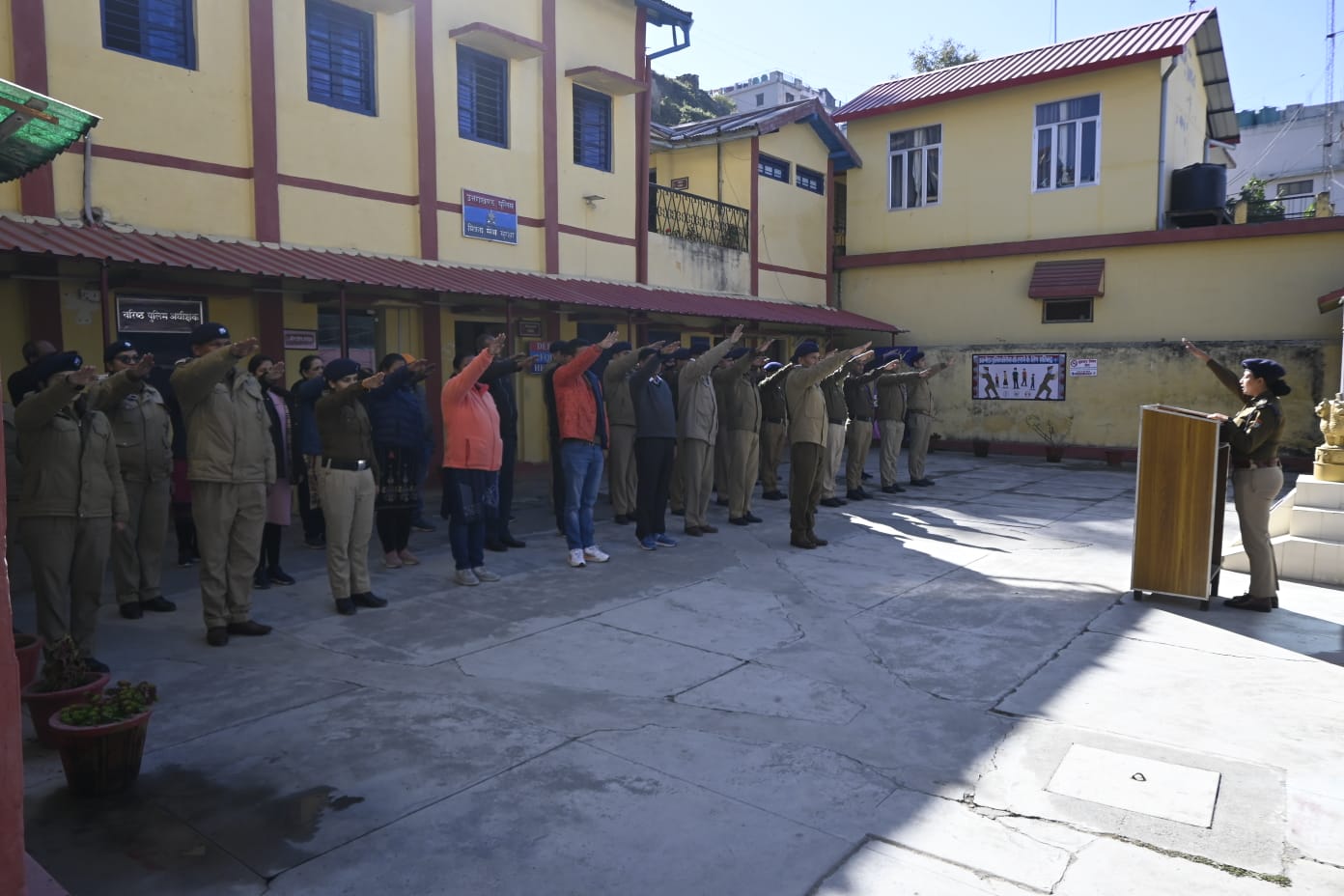 अल्मोड़ा-आज दिनांक 26.11.2022 को भारतीय संविधान दिवस के अवसर पर अल्मोड़ा पुलिस के समस्त थाना/पुलिस लाईन/फायर स्टेशन/पुलिस कार्यालय में नियुक्त पुलिस अधि0/कर्मचारीगणों ने राष्ट्र के संविधान निर्माताओं को स्मरण कर संविधान की एकता,अखण्डता व सम्प्रभुता को बनाये रखने हेतु संविधान दिवस की शपथ ली गयी।सभी पुलिसकर्मियों ने यह भी संकल्प लिया कि हम अपने प्रदेश में बेहतर कानून व्यवस्था बनाये रखने और देश में शांति,उन्नति और समृद्धि को बढ़ाने का निरन्तर प्रयास करेंगे।